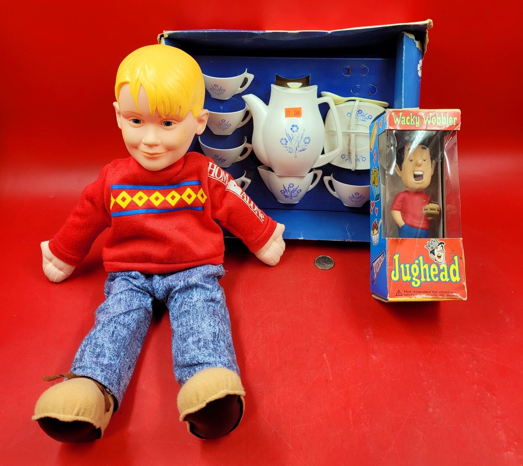 VTG Toy Lot w/ Home Alone Doll, Tea Set, & Wacky Wobbler Jughead