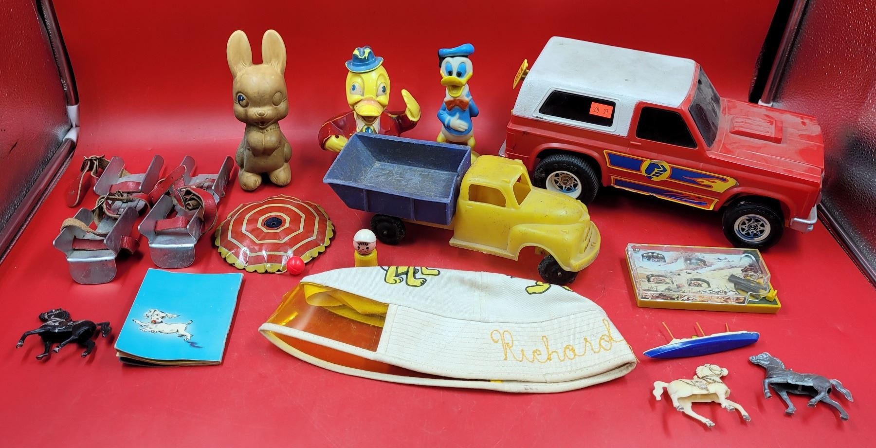 VTG Toy Lot w/ Plastic Trucks, Donald Duck, Bunny Rabbit, & More