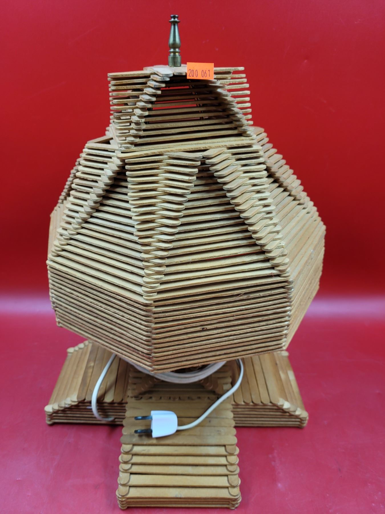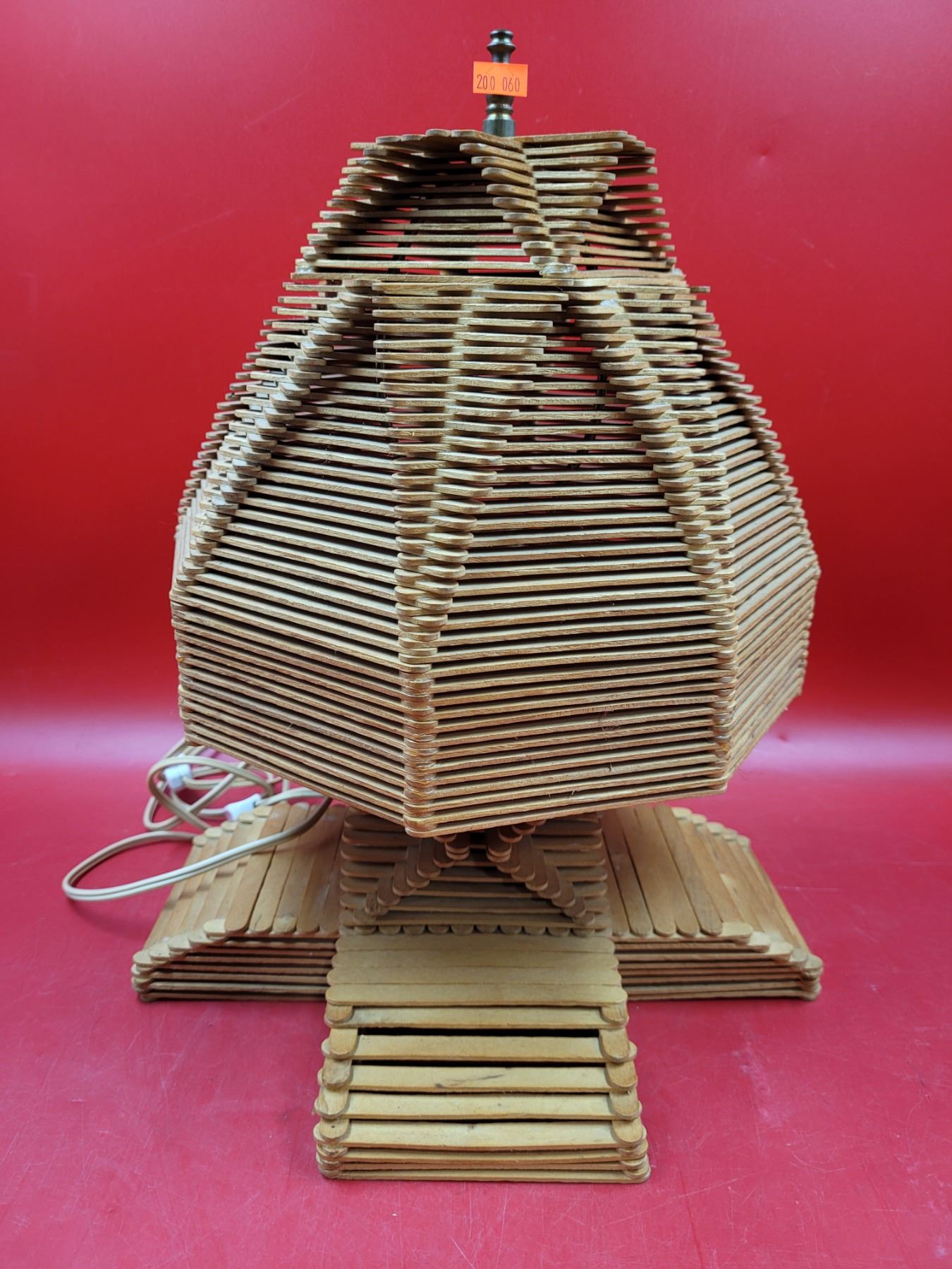 VTG Tramp Art Popsicle Stick Lamp