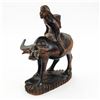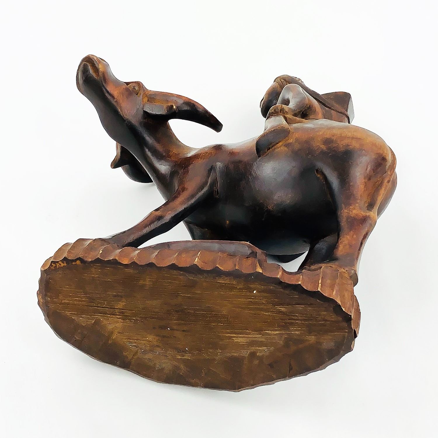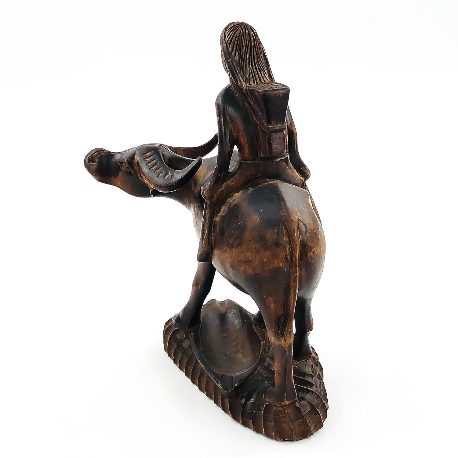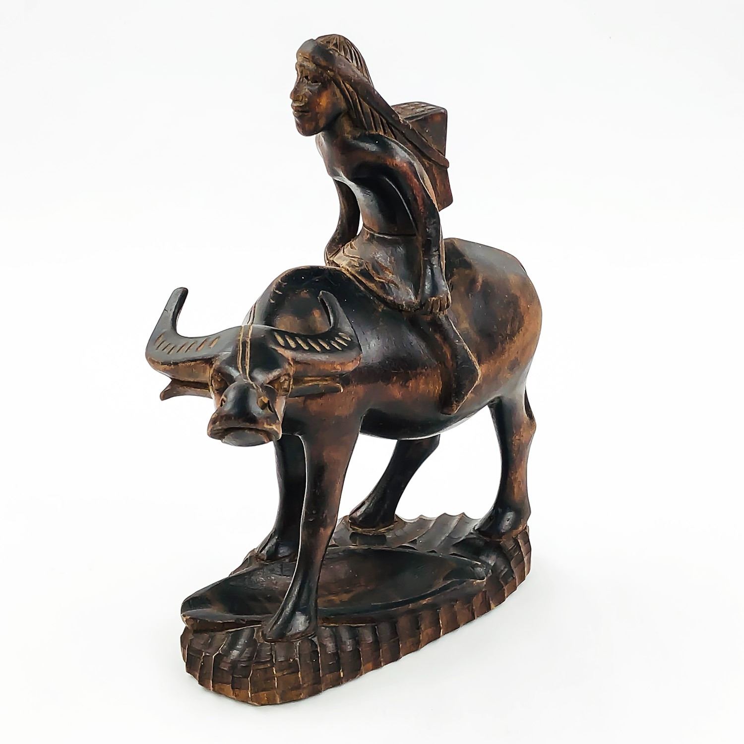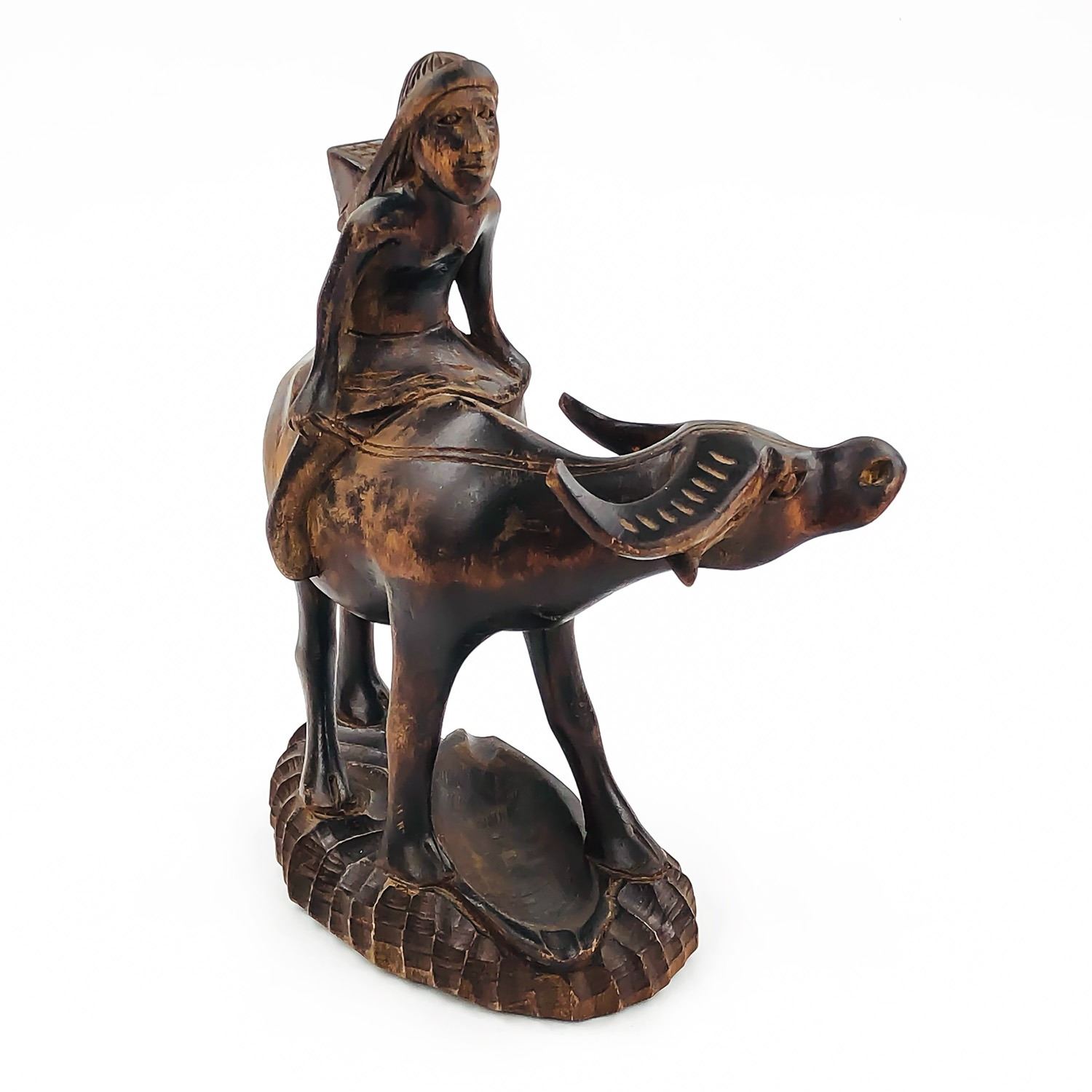 #9403 - WOOD CARVING OF A FIGURE RIDING A WATER BUFFALO OR OX - ASHTRAY CARVED IN BASE, AGE AND MAKER UNKNOWN, MEASURES 7.5” (19 CM) LONG, 4” (10 CM) WIDE - INCLUDES TURNED OX HEAD, 8.75” (22 CM) HIGH***ITEM(S) LOCATED IN LETHBRIDGE ALBERTA. ALL ITEMS IN THIS AUCTION QUALIFY FOR OUR FREE TRANSPORT TO EDMONTON SERVICE. WORLDWIDE SHIPPING AVAILABLE