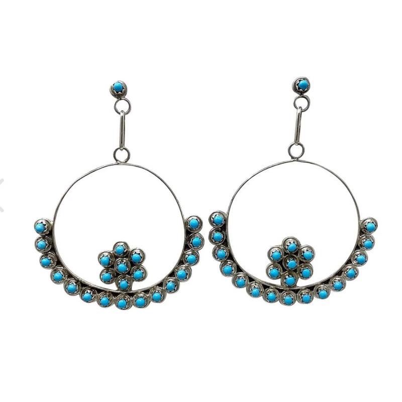 VTG Zuni Snake Eye Turquoise Dangle Earrings Sterling Silver Native American
