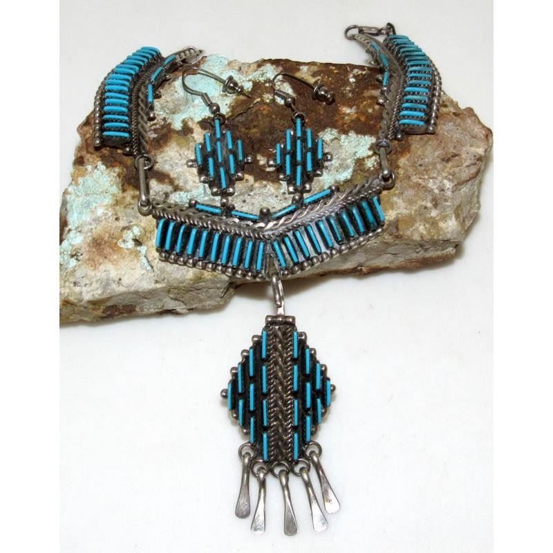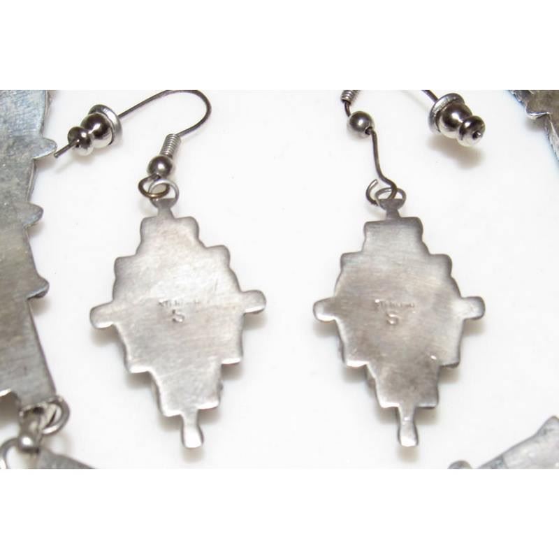 VTG Zuni Turquoise & Sterling Silver Dangle Necklace and Earrings Set