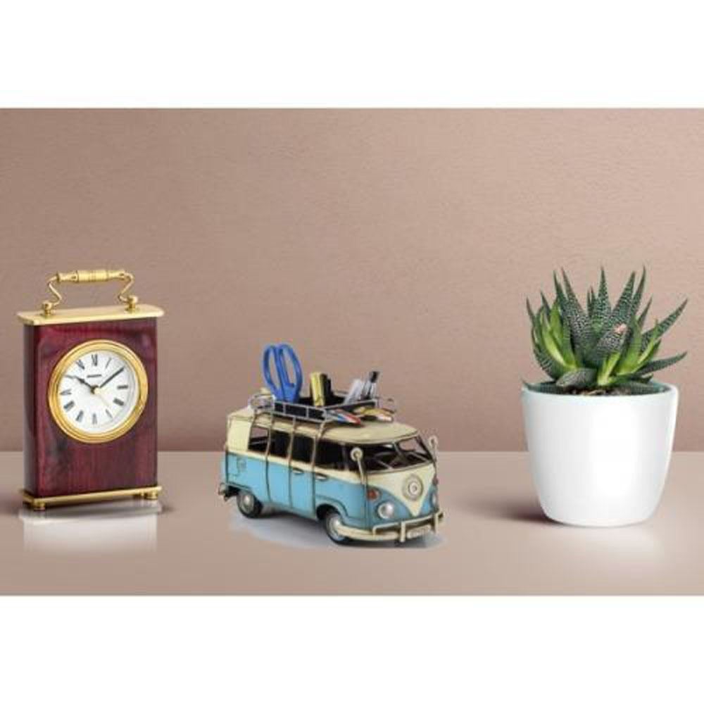 Beautifully handmade and so each piece is a unique collectible and show piece for your home. Decoration parts comes with stickers to match your scene, Plastic die cast metal, Ultra precision design with some moving parts where applicable, Decoration parts decals accurately reproduced. Decorate for any table, desk, or shelf in sporty fashion with Our Rustic Volkswagen Mini Bus. Featuring a rustic iron frame, this charming vintage Classic Car includes a fine details. The White and Blue metal Exterior are finished in natural colors. Size: 5X11X5 Inches. Weight: 10 LBS.