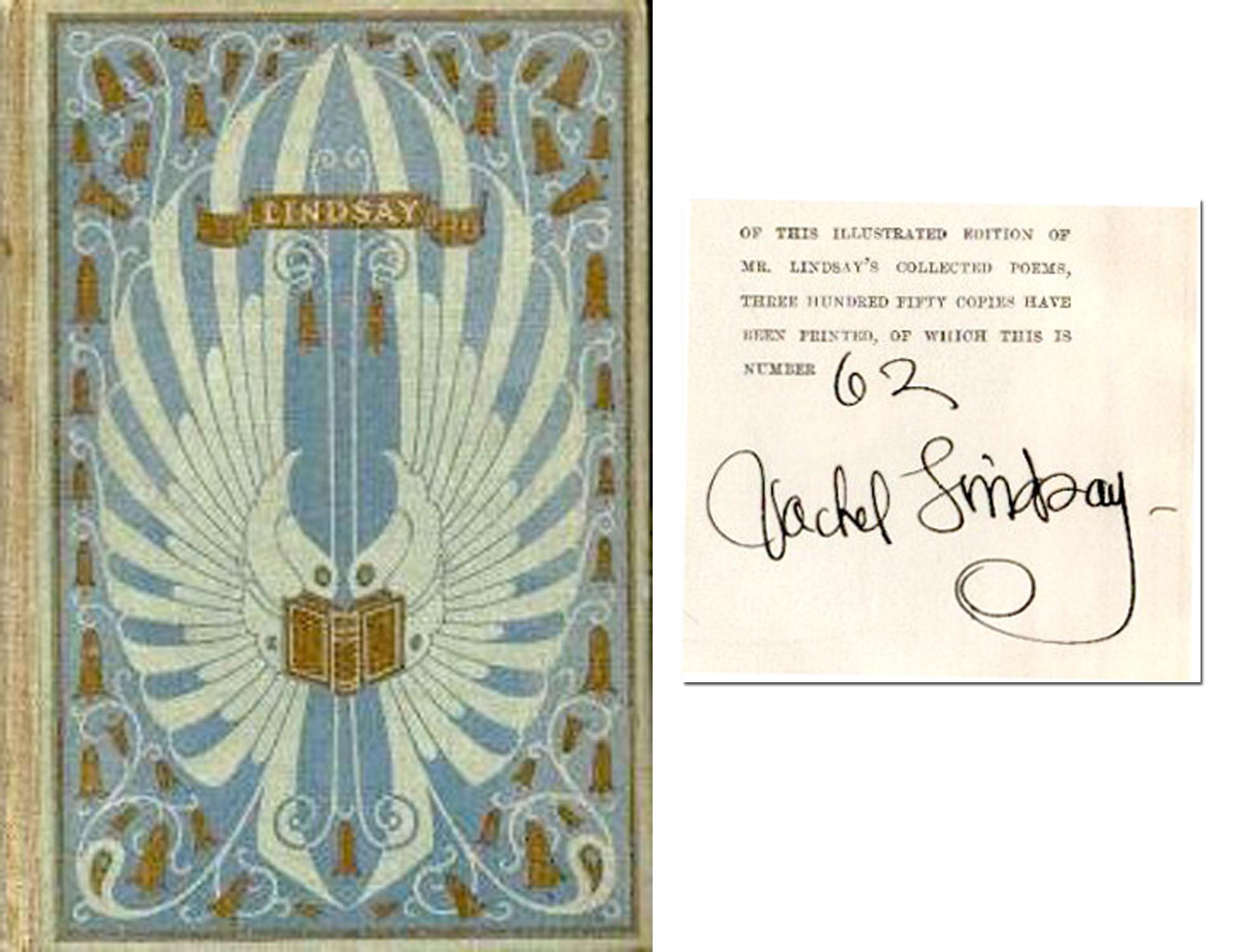 Limited edition, illustrated ''Collected Poems of Vachel Lindsay.'' New York: Macmillan Co.: 1925. Numbered 62 of 350 and signed by author on ffep. Measures 6'' x 8'', 464pp. Front pastedown contains previous owner's bookplate. Overall very good condition.