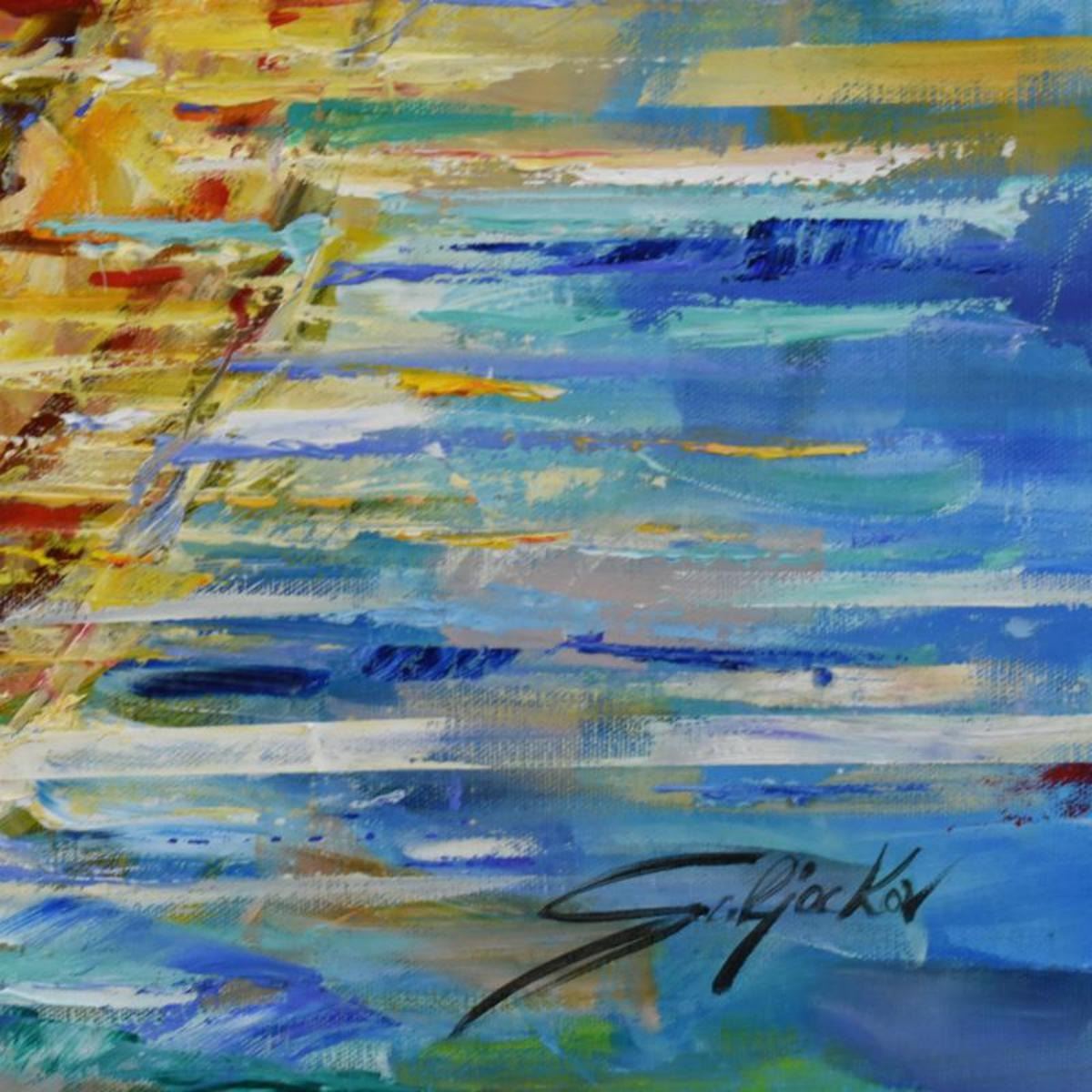 Vadik Suljakov, "Azure Reflections" Original Oil Painting on Canvas, Hand Signed with Letter of Auth