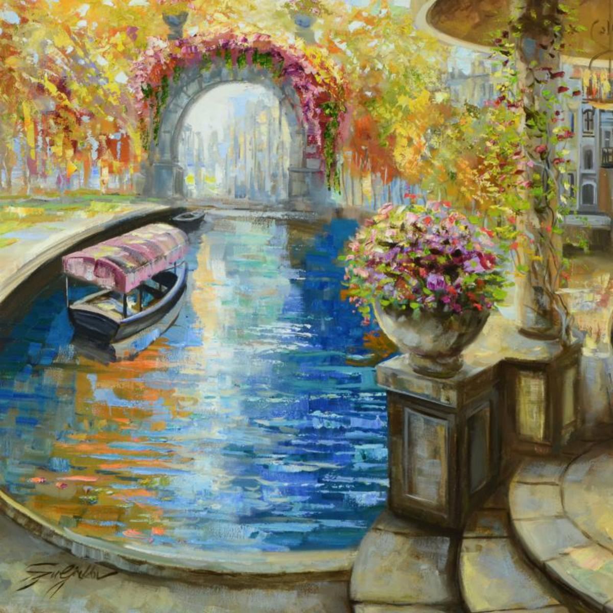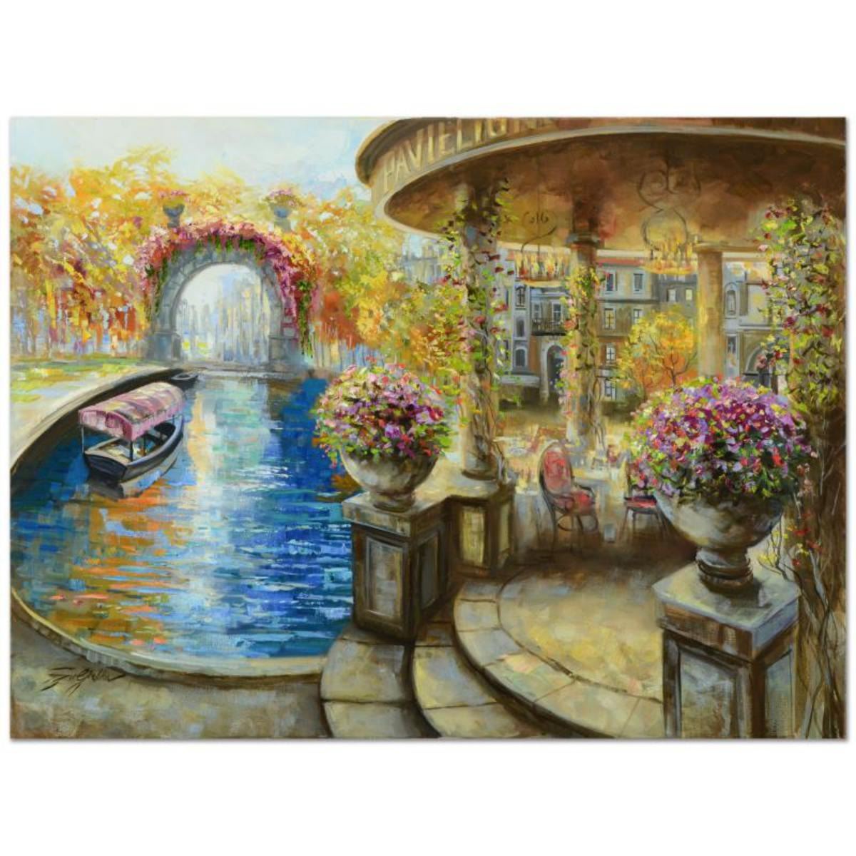 "Pavilion" is an original painting on stretched canvas by Vadik Suljakov. Hand signed by the artist, this piece comes with a letter of authenticity. Measures approx. 30" x 40" (image). Reference #: 243379