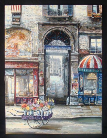 This is a limited edition serigraph on canvas by Vadik Suljakov. A passageway into the inner part of the old city is the subject here. Suljakov employs Impressionistic brushstrokes, while conveying a sharp realism, seen particularly in the old advertising signs, and the weather-worn shutters.Artist: Vadik Suljakov Title: "Passage de Val de Leger" Signed: "Suljakov" by the artist in gold paint pen on the front, lower right. Medium: Serigraph print on canvas, with embellishments; stretched, unframed Edition: Numbered 33/195 in black marker on the verso Size: 27 x 36 inches Condition: Excellent Certificate of Authenticity: Included This Suljakov print is full of French charm, Romance, and little mystery of what lies beyond the passage. BiographyVadik Suljakov (Russia, b. 1960) studied at the Moscow First Art School and served apprenticeships at the Moscow Graphic Art Committee and the Moscow Art Group. He left Russia in 1990, and spent a year in New York City working as a commercial artist. In 1991, Suljakov moved to California, where his work came to the attention of art dealer Mark Siegel. Suljakov works in oils and acrylics in a style best described as "Impressionistic." He specializes in picturesque urban landscapes from the world's great cities. His vibrantly textured and richly detailed style has attracted a large and faithful following of collectors, which will undoubtedly continue to grow.