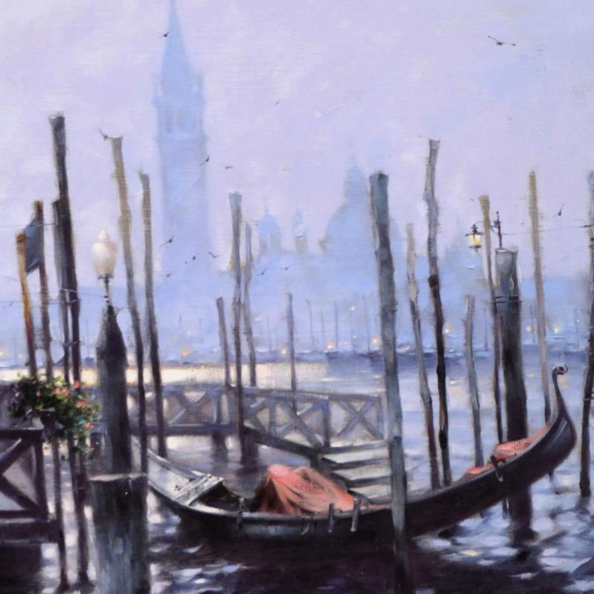 "Gondola at Evening Time" is a limited edition hand embellished giclee on canvas by Vakhtang, numbered and hand signed by the artist. Measures approx. 16" x 20" (image). Reference #: 220837.