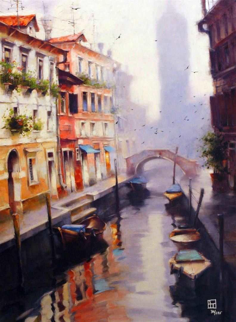 Vakhtang "MORNING CLOCK TOWER" Hand Signed and Numbered Limited Edition Giclee on Canvas Dimensions: 24 x 18 Inches (Note: Edition number recieved may differ from photo)