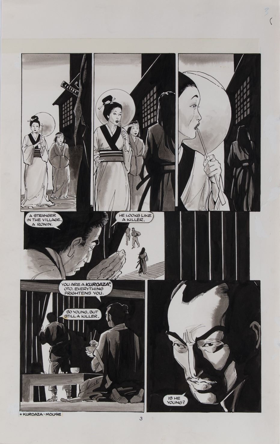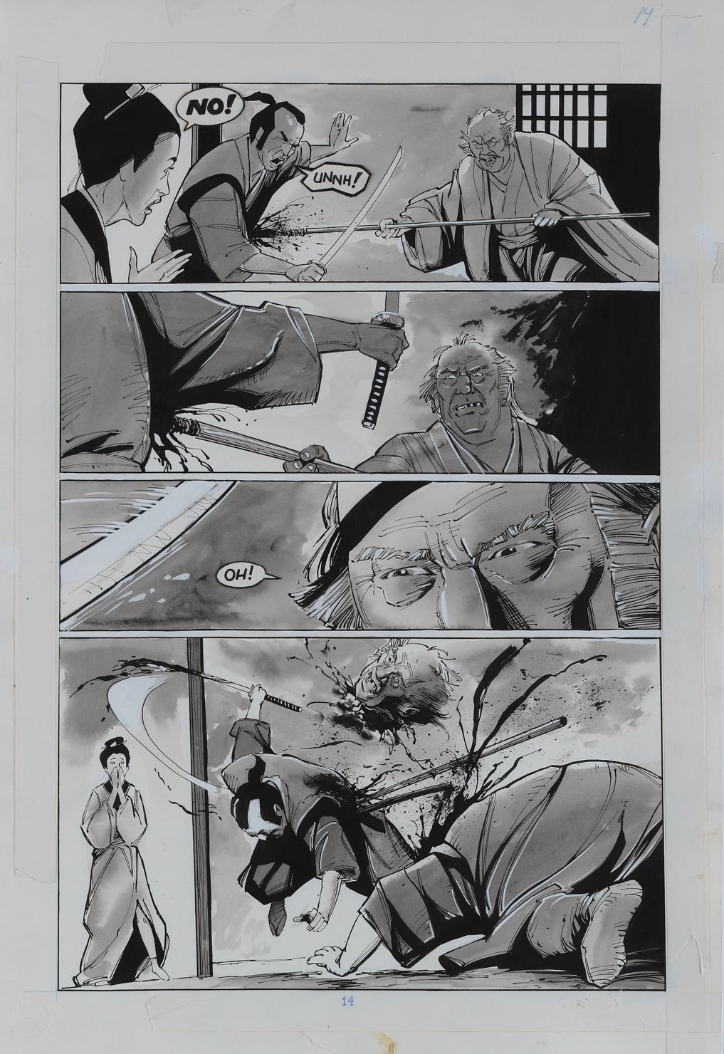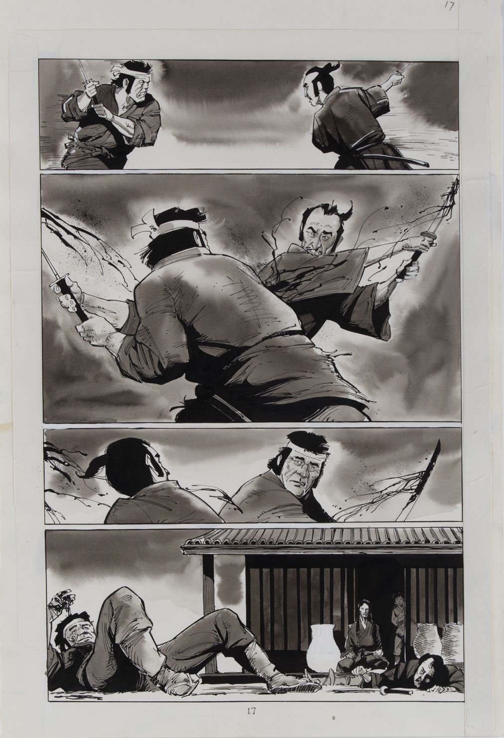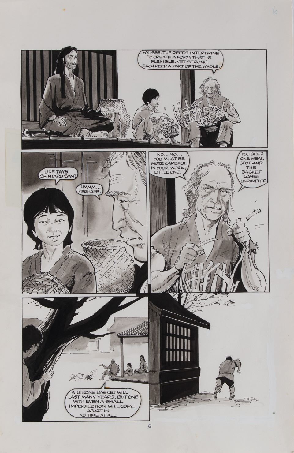 167. Val Mayerik original artwork for Young Master #9 complete 22-page story "Fear and Sin". (New Comics Group, 1987) Accomplished in pencil, ink, and ink wash on 14.4 x 22 in. art board. Great Samurai and western vibe, with many large and arresting panels of finely executed art. In very good condition. $200 - $300