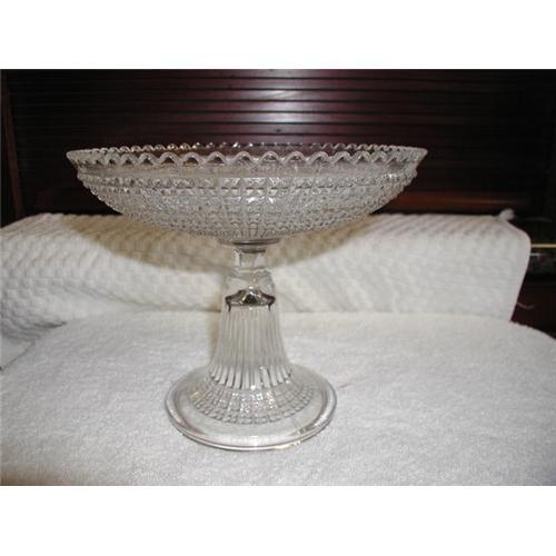 Val St. Lambert Compote. Scalloped Rim and Beautiful cut glass design in bowl and base. Excellent condition. A must for St. Lambert collectors.