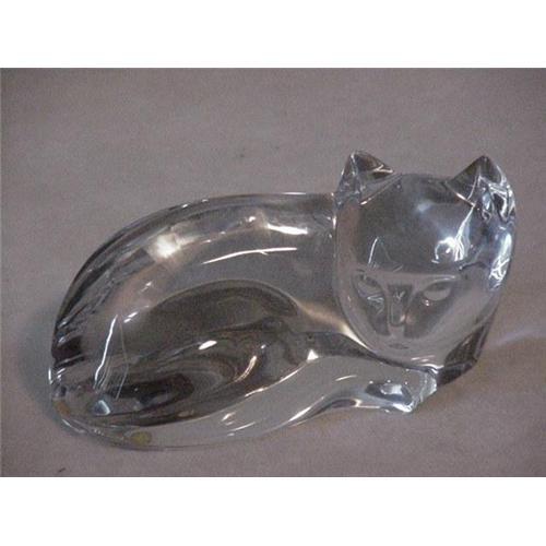 A curled up crystal cat, 6 1/2" long 3 5/8" tall, clear crystal. This cat was made by Val St Lambert and signed De Sousa on the underside. Beautiful feline to decorate your coffee table in beautiful condition, no chips. (4)