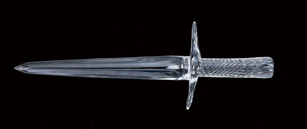 Val St. Lambert signed crystal dagger meant to be used as a desk ornament, approx. 9-7/8” overall with 6-3/4” blade. Nicely turned grip. Hugh Hayes Collection. Est: $150 - $300