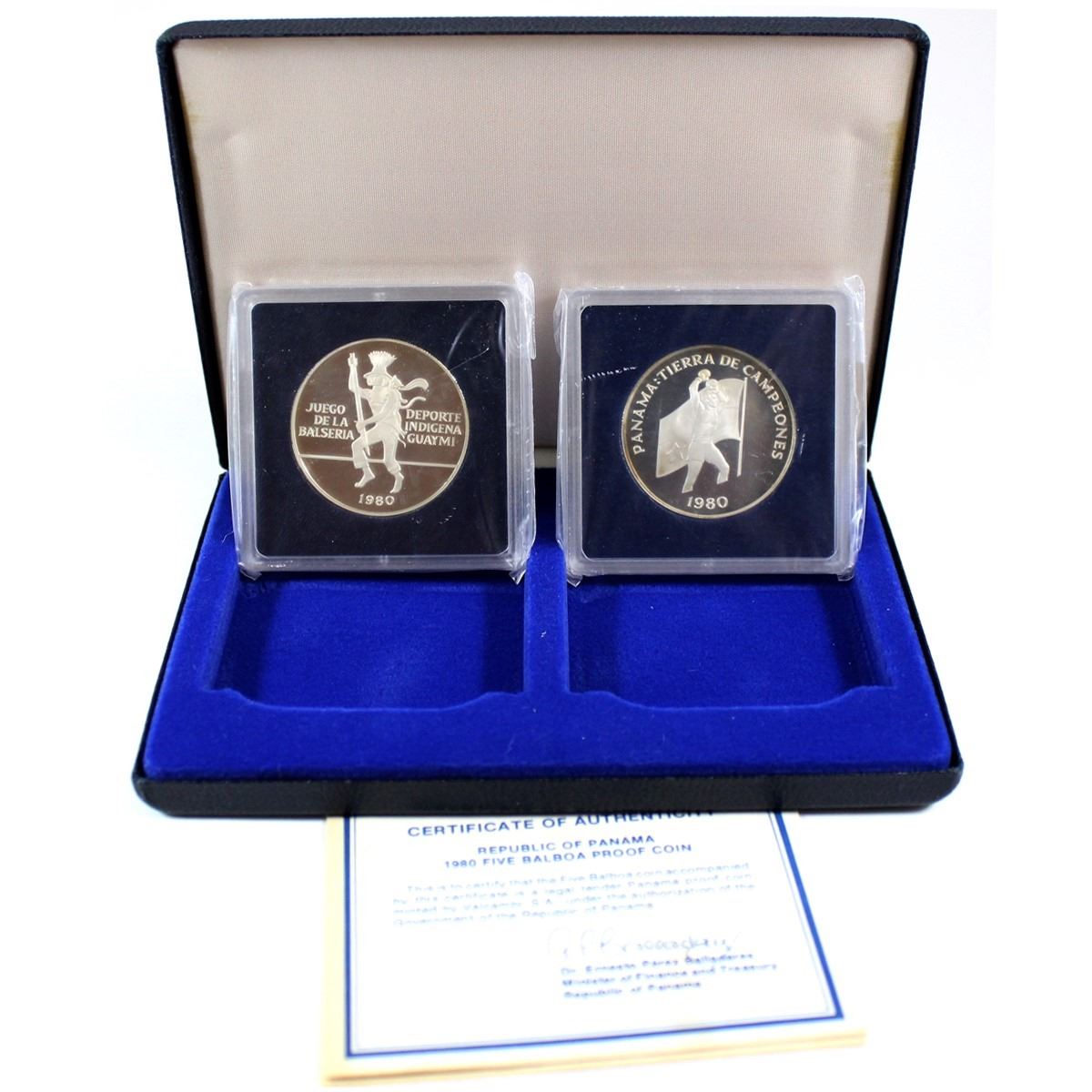 Valcambi Mint Issue: 1980 Republic of Panama 5 & 10 Balboa Proof Coin Set. Please note coins have light toning.