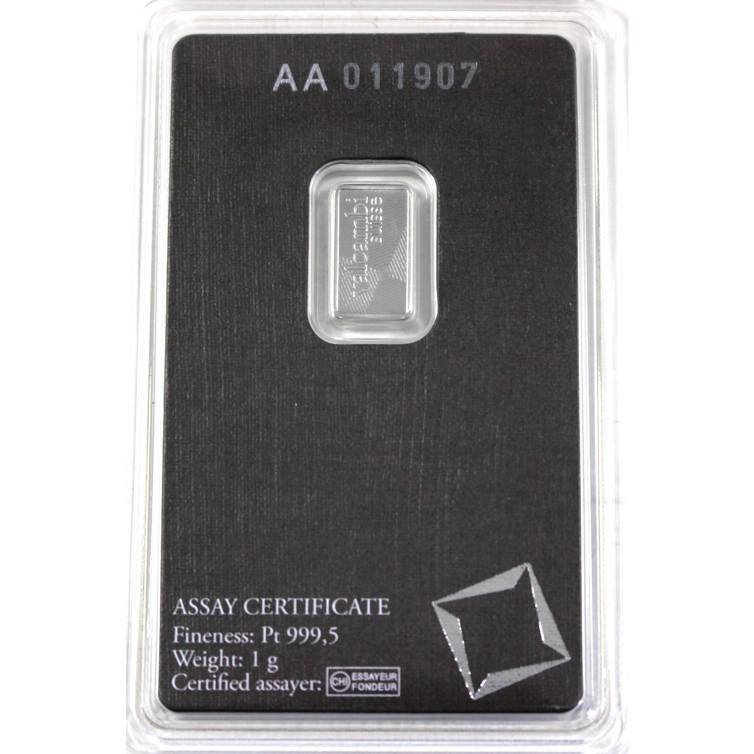 Valcambi Suisse 1g .9995 Platinum Bar in Hard Plastic Certificate. (TAX Exempt)