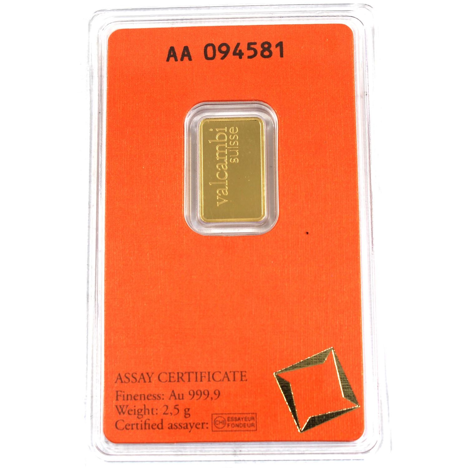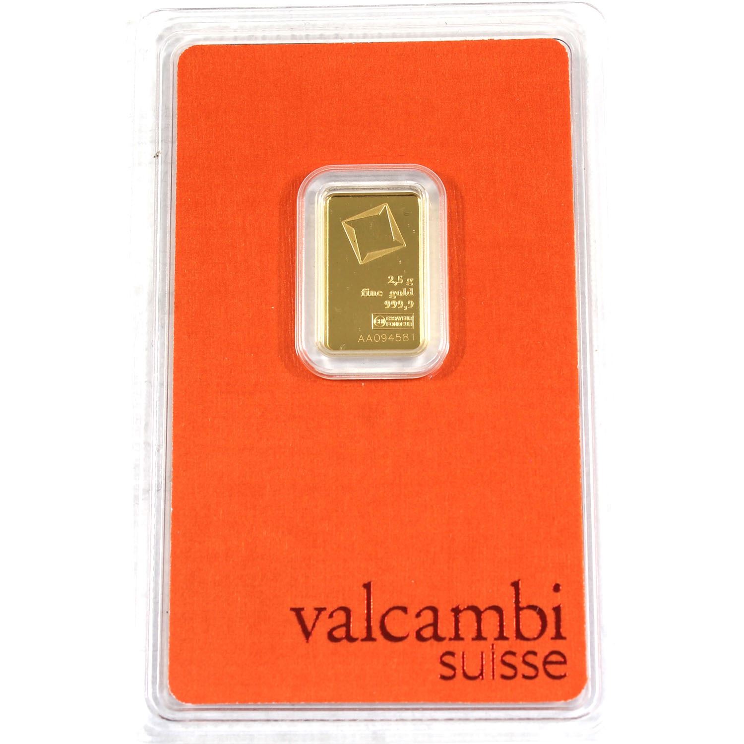 Valcambi Suisse 2.5g .9999 Fine Gold Bar in Hard Plastic Certificate (TAX Exempt).