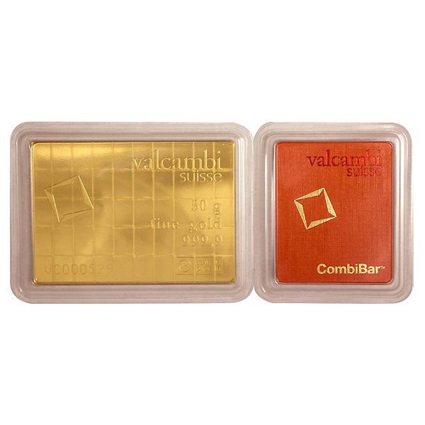 Valcambi Suisse 50 Gram Gold CombiBar **|**|** Valcambi Suisse 50 Gram Gold CombiBar ; MSRP: $0