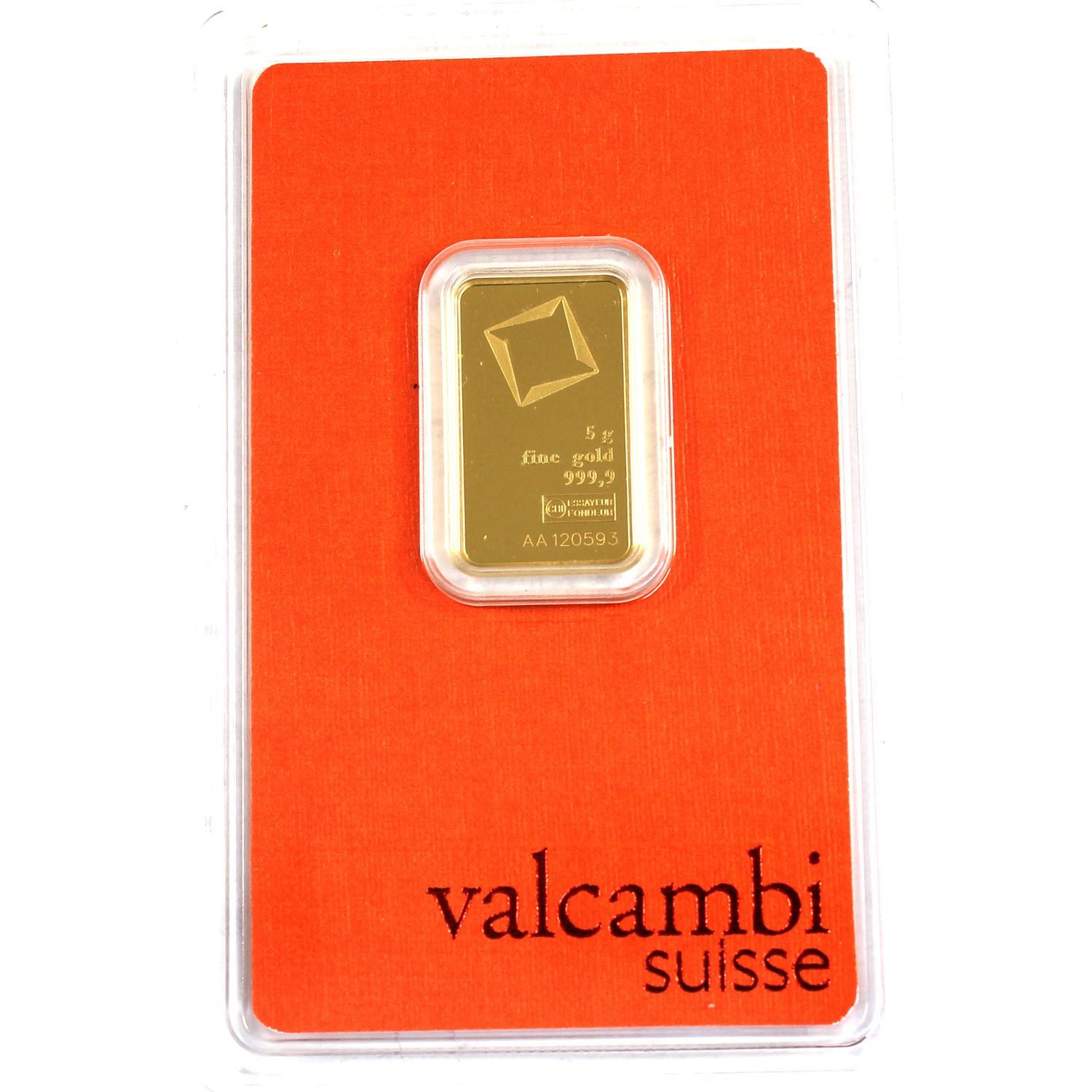 Valcambi Suisse 5g .9999 Fine Gold Bar in Hard Plastic Certificate (TAX Exempt).
