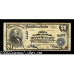 <TABLE cellSpacing=0 cellPadding=0 width="100%" bgColor=#000000 border=0><TBODY> <TR><TD width="100%"><TABLE cellSpacing=1 cellPadding=3 width="100%" border=0><TBODY><TR><TD width="100%" bgColor=#79735c><FONT face=arial color=#ffffff size=3><B>Description</B> </FONT></TD></TR><TR><TD width="100%" bgColor=#ffffff><FONT face=arial size=2><B>Valdosta, GA</B></I> - $20 1902 Plain Back Fr. 653 <B>The First NB</B></I> Ch. # 4429<BR>A by no means easy to find community in large size, with most specimens from here in long term Georgia holdings. <B>Fine.</B></I> (550-850 ) </FONT></TD></TR></TBODY></TABLE></TD></TR></TBODY></TABLE><BR><TABLE cellSpacing=0 cellPadding=0 width="100%" bgColor=#000000 border=0><TBODY><TR> Important notice: Heritage usually auctions material at the rate of 200-250 lots per hour. On some occasions eBay Live bid software or the Internet may not be able to keep up with the pace of the auction. We recommend placing a realistic absentee bid now as insurance to avoid disappointment. Occasionally the auctioneer may eliminate or reject an eBay Live bid, and the auctioneer may also reopen a lot after the close of the eBay live bidding (usually because we missed an audience bid), and may reject your bid even if it shows you as the winning bidder. By bidding via eBay Live, you agree that Heritage may award the lot to another bidder at its sole discretion under the circumstances described above or any other reasonable circumstances. Also please note that all Heritage lots purchased through eBay Live carry a 20% Buyer's Premium. Please make sure you read the Terms and Conditions before you bid.</TR></TBODY></TABLE>