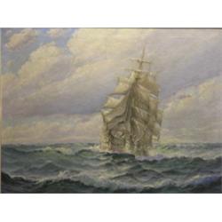Theodore Victor Carl Valenkampf. (East Coast Marine Painter 1868-1924) 'Untitled' Ship at Sea. Oil on Canvas. 37" x 28" signed l.l. T V C Valenkampt.