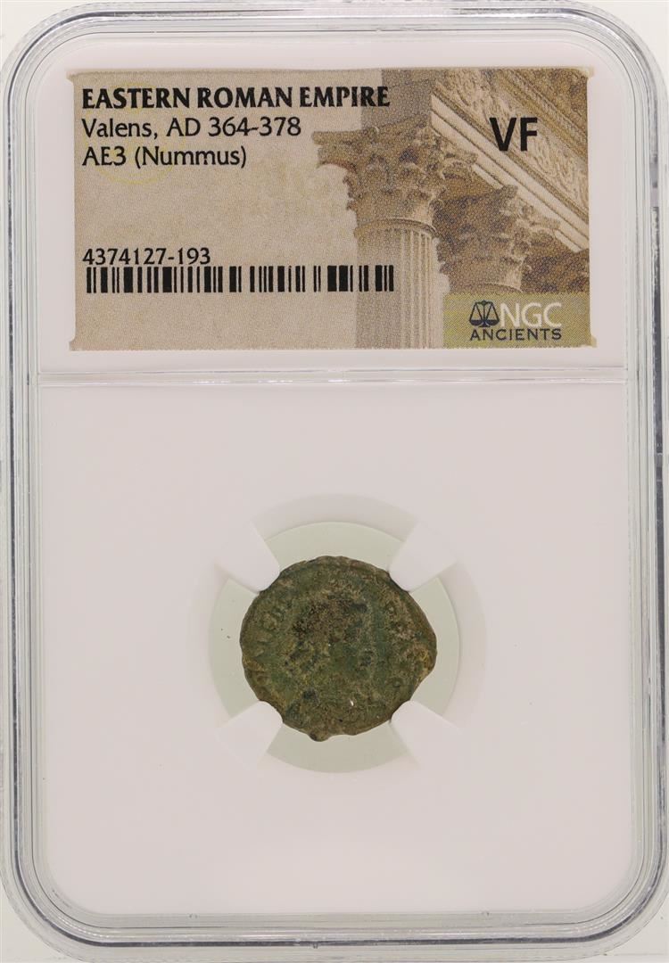 One Valens 364-378 AD Ancient Eastern Roman Empire Coin NGC VF. NGC Certified.