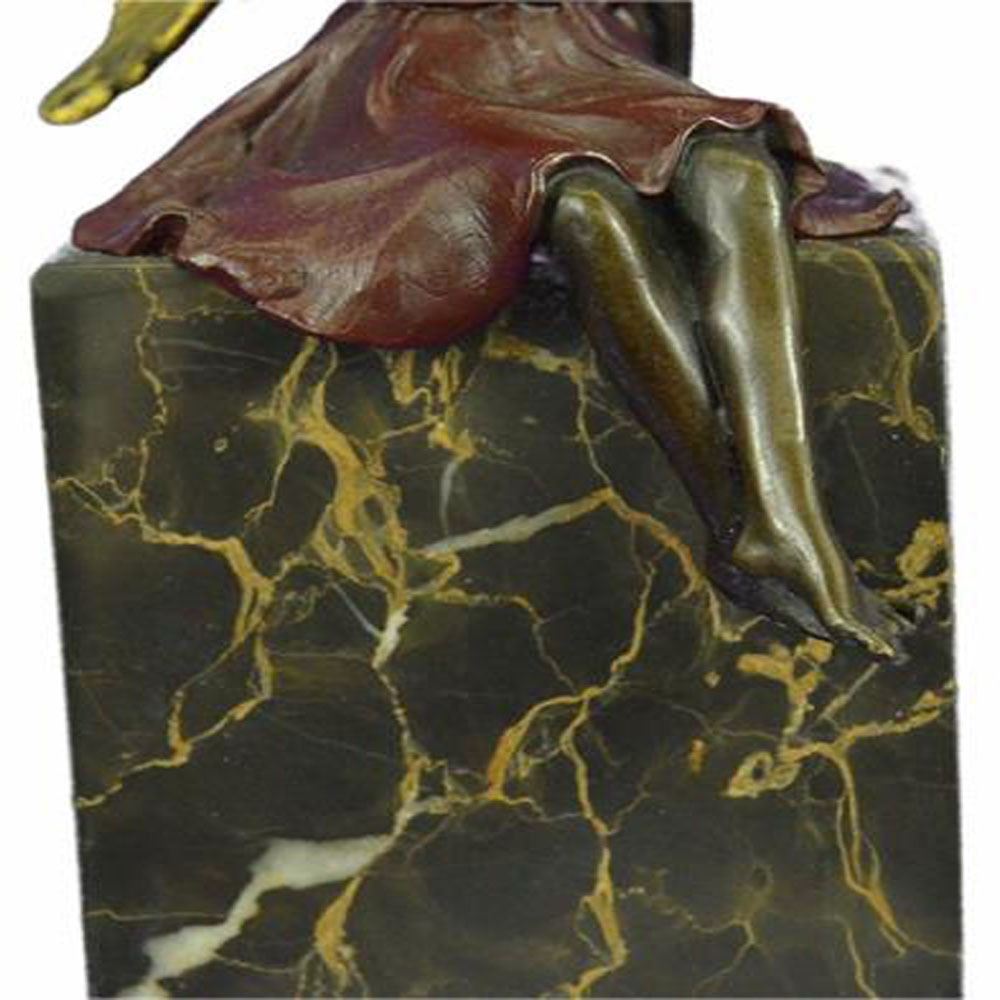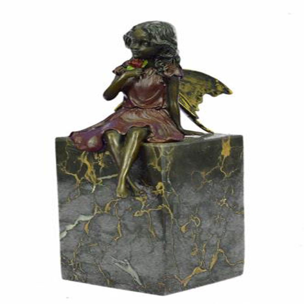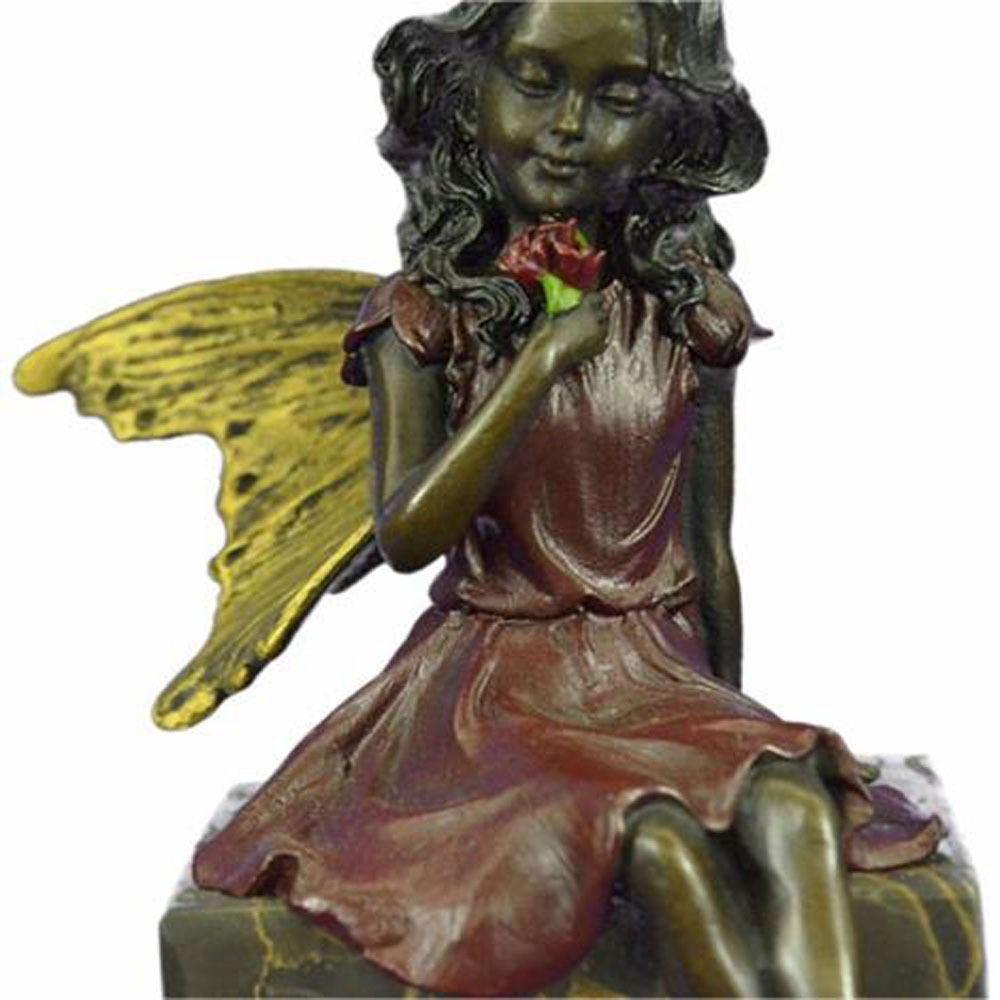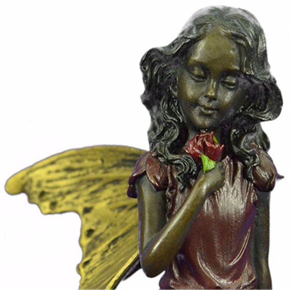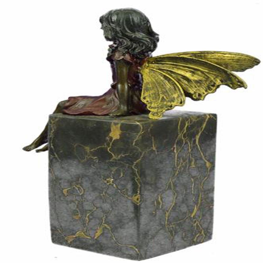 Daydreamers will fall in love with this daydreaming fairy. She sits on a rock and gazes out into the mystical land around her. She dangles her legs over the side and crosses her ankles. She is lulled by the soft sounds of life and fantasy around her. Her fairy wings arch behind her. Her long red patina dress cascades down around her and she sniffs a sweet flower. This Sculpture was cast using the Lost Wax Method and mounted on a marble base. Dimensions: Height 9 X Width 8 inches. Weight: 8 LBS.