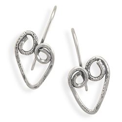 Oxidized sterling silver french wire earrings with angel drops. The angels measure approximately 13.5mm x 16mm. These earrings hang 29mm. .925 Sterli