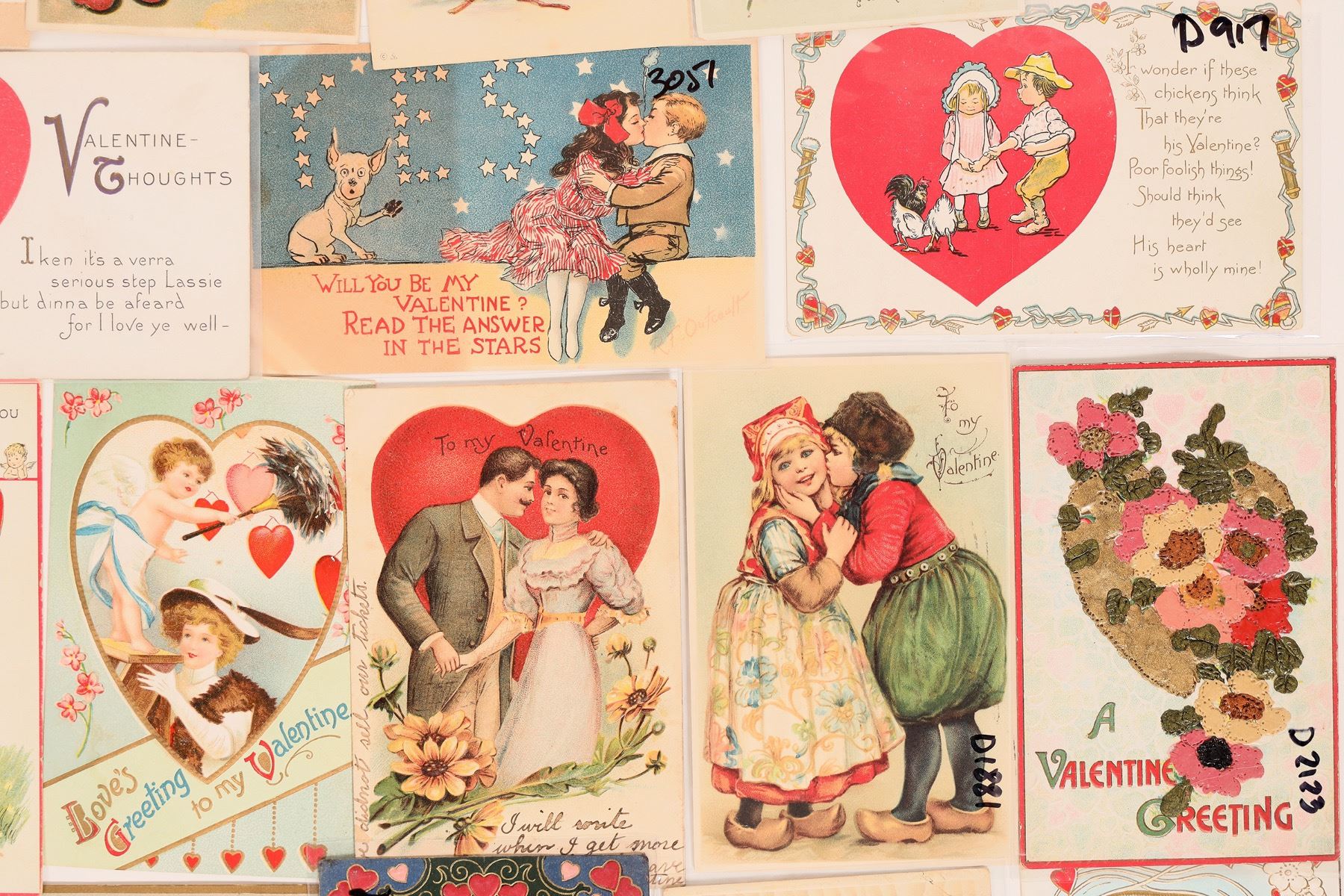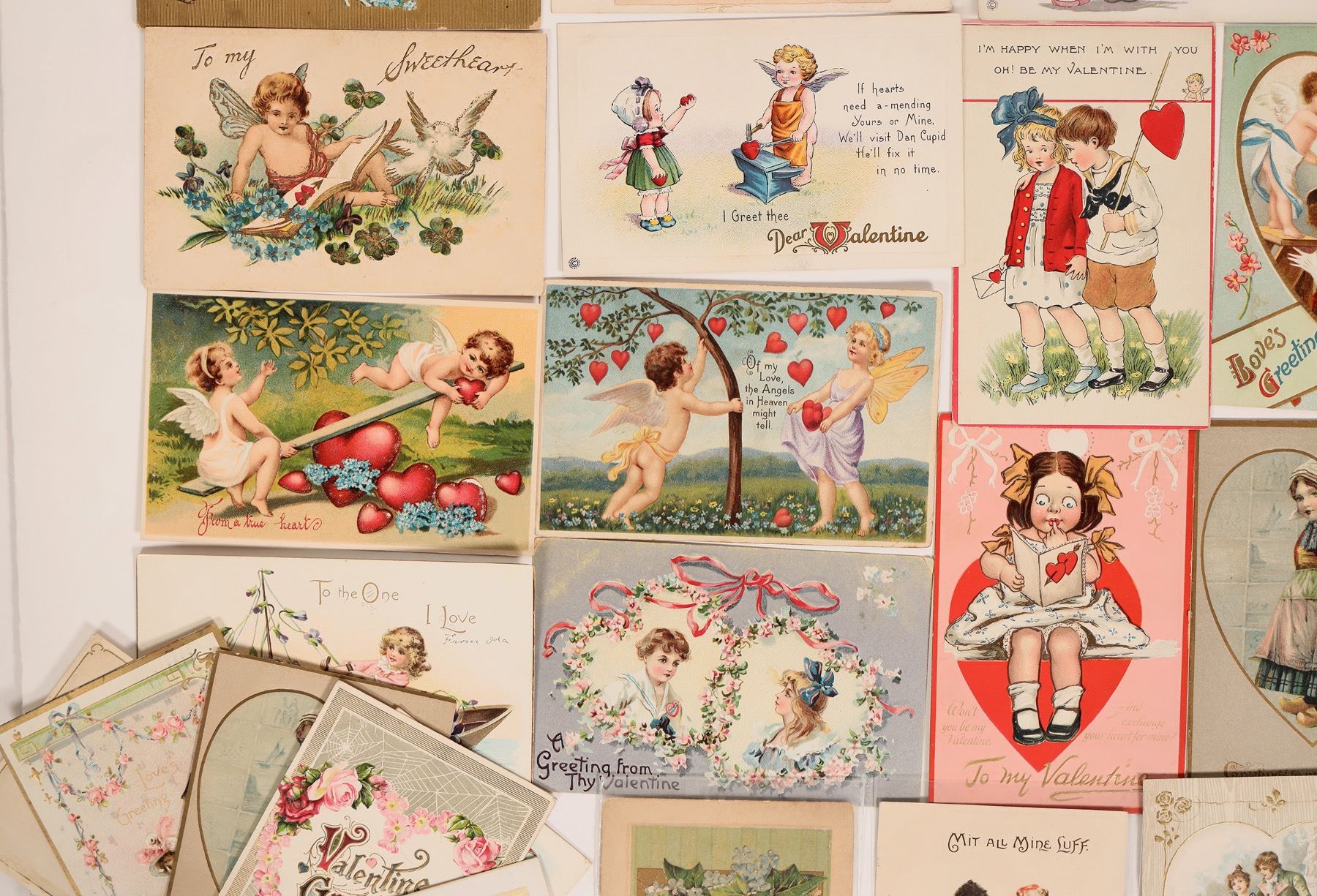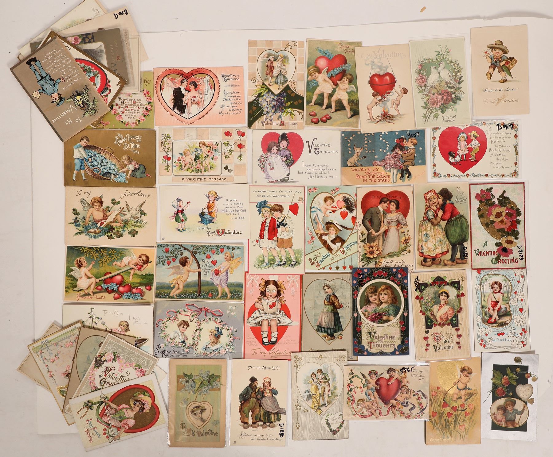 About 50 Valentine's c. 1907-11 postcards. Cherubs, hearts and more.