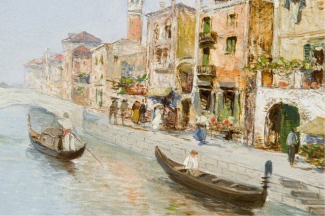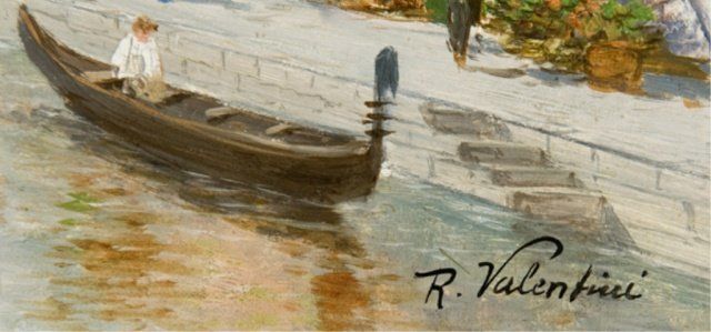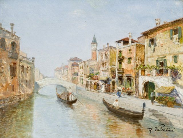 Valentini, R. (It. late 19th/early 20th century) Venetian Canal Scene Venetian Canal Scene. Signed "R. Valentini". In simple gilt frame. 9 1/4" x 12"; Frame: 13" x 16".