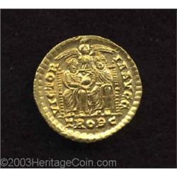 <TABLE cellSpacing=0 cellPadding=0 width="100%" bgColor=#000000 border=0><TBODY> <TR><TD width="100%"><TABLE cellSpacing=1 cellPadding=3 width="100%" border=0><TBODY><TR><TD width="100%" bgColor=#79735c><FONT face=arial color=#ffffff size=3><B>Description</B> </FONT></TD></TR><TR><TD width="100%" bgColor=#ffffff><FONT face=arial size=2><B>Valentinian I.</B></I> A.D. 364-375. AV solidus (20 mm, 4.44 g). Trier, A.D. 373-375. Draped and cuirassed bust right, wearing a diadem of rosettes / Valentinian and Valens enthroned facing, holding between them a globe; palm between legs, figure of Victory above; TROBC. RIC IX 17b.3; Depeyrot 43/1. Superb XF. </FONT></TD></TR></TBODY></TABLE></TD></TR></TBODY></TABLE><BR><A name=PricesRealized></A><TABLE cellSpacing=0 cellPadding=0 width="100%" bgColor=#000000 border=0><TBODY><TR><TD width="100%"><TABLE cellSpacing=1 cellPadding=3 width="100%" border=0><TBODY><TR><TD width="100%" bgColor=#79735c><A name=PR><FONT face=arial color=#ffffff size=3><B>Previous Prices from Heritage Auctions</B> </FONT></A></TD></TR><TR><TD bgColor=#f6f6ed>No Prior Data Recorded </TD></TR><TR><TD bgColor=#ffffff><FONT face=arial size=1 ?>PLEASE NOTE: All prices realized reflect the final hammer price PLUS the buyer's premium in auctions that charge a buyer's premium. Each item has a notation at the top of the listing indicating whether that lot included a buyer's premium. Example: A item that sells with a final hammer price of $100 and a 20% buyer's premium will display with a price realized of $120. All information listed is intended to be as accurate as possible, but errors are possible. Please use this guide carefully and inform us of any inaccuracies. </FONT></TD></TR></TBODY></TABLE></TD></TR></TBODY></TABLE><BR><TABLE cellSpacing=0 cellPadding=0 width="100%" bgColor=#000000 border=0><TBODY><TR><TD width="100%"><TABLE cellSpacing=1 cellPadding=3 width="100%" border=0><TBODY><TR><TD width="100%" bgColor=#79735c colSpan=6><FONT face=arial color=#ffffff size=3><B>Price Guide*</B> </FONT></TD></TR><TR bgColor=#f6f6ed><TD align=middle><B>Grade</B> </TD><TD align=middle><B>Coin World<BR>(Trends)</B> </TD><TD align=middle><B>Numismedia<BR>Retail</B> </TD><TD align=middle><B>Numismedia<BR>Wholesale</B> </TD><TD align=middle><B>Coin<BR>Universe</B> </TD><TD align=middle><B>Heritage<BR>Value Index</B> </TD></TR><TR bgColor=#ffffff><TD colSpan=6><FONT size=1>*All information listed is intended to be as accurate as possible, but errors are possible. No item may be returned or refused based on this information which is provided as a service to our customers. You should contact each pricing source directly to determine the accuracy of this information. </FONT></TD></TR></TBODY></TABLE></TD></TR></TBODY></TABLE><BR><TABLE cellSpacing=0 cellPadding=0 width="100%" bgColor=#000000 border=0><TBODY><TR><TD width="100%"><TABLE cellSpacing=1 cellPadding=3 width="100%" border=0><TBODY><TR><TD width="100%" bgColor=#79735c><FONT face=arial color=#ffffff size=3><B>Population Guide</B> </FONT></TD></TR><TR bgColor=#ffffff> Important notice: Heritage usually auctions material at the rate of 200-250 lots per hour. On some occasions eBay Live bid software or the Internet may not be able to keep up with the pace of the auction. We recommend placing a realistic absentee bid now as insurance to avoid disappointment. Occasionally the auctioneer may eliminate or reject an eBay Live bid, and the auctioneer may also reopen a lot after the close of the eBay live bidding (usually because we missed an audience bid), and may reject your bid even if it shows you as the winning bidder. By bidding via eBay Live, you agree that Heritage may award the lot to another bidder at its sole discretion under the circumstances described above or any other reasonable circumstances. Also please note that all Heritage lots purchased through eBay Live carry a 20% Buyer's Premium. Please make sure you read the Terms and Conditions before you bid.</TD></TR></TBODY></TABLE></TD></TR></TBODY></TABLE>