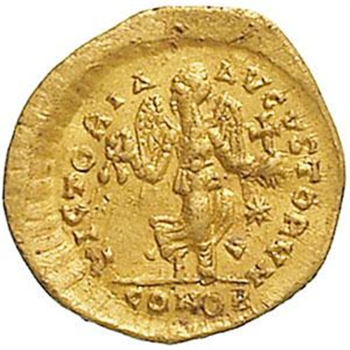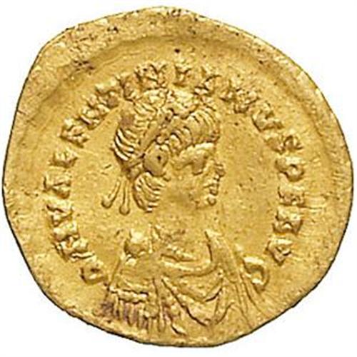Roman Empire Coins. Valentiniano III (425-455). Tremissis, Constantinople. D/ DN VALENTINIANVS P F AVG. Busto diademato, drappeggiato e corazzato a destra. R/ VICTORIA AVGVSTORVM. La Vittoria incede a destra, con il capo rivolto indietro, tenendo corona e globo crucigero. Nel campo a destra, stella. In esergo: CONOB. LRC 839. gr. 1.39 R. AU. qSPL.