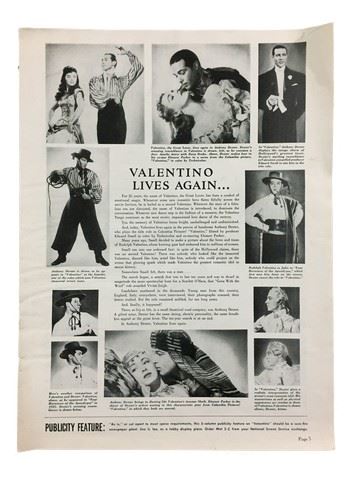 Valentino (Columbia Pictures, 1951). An extremely rare and oversized Publicity Press Book. Starring: Anthony Dexter. The book has fold lines, creases, marks, edge wear damage and paper loss. Very Fine. (12" X 18").