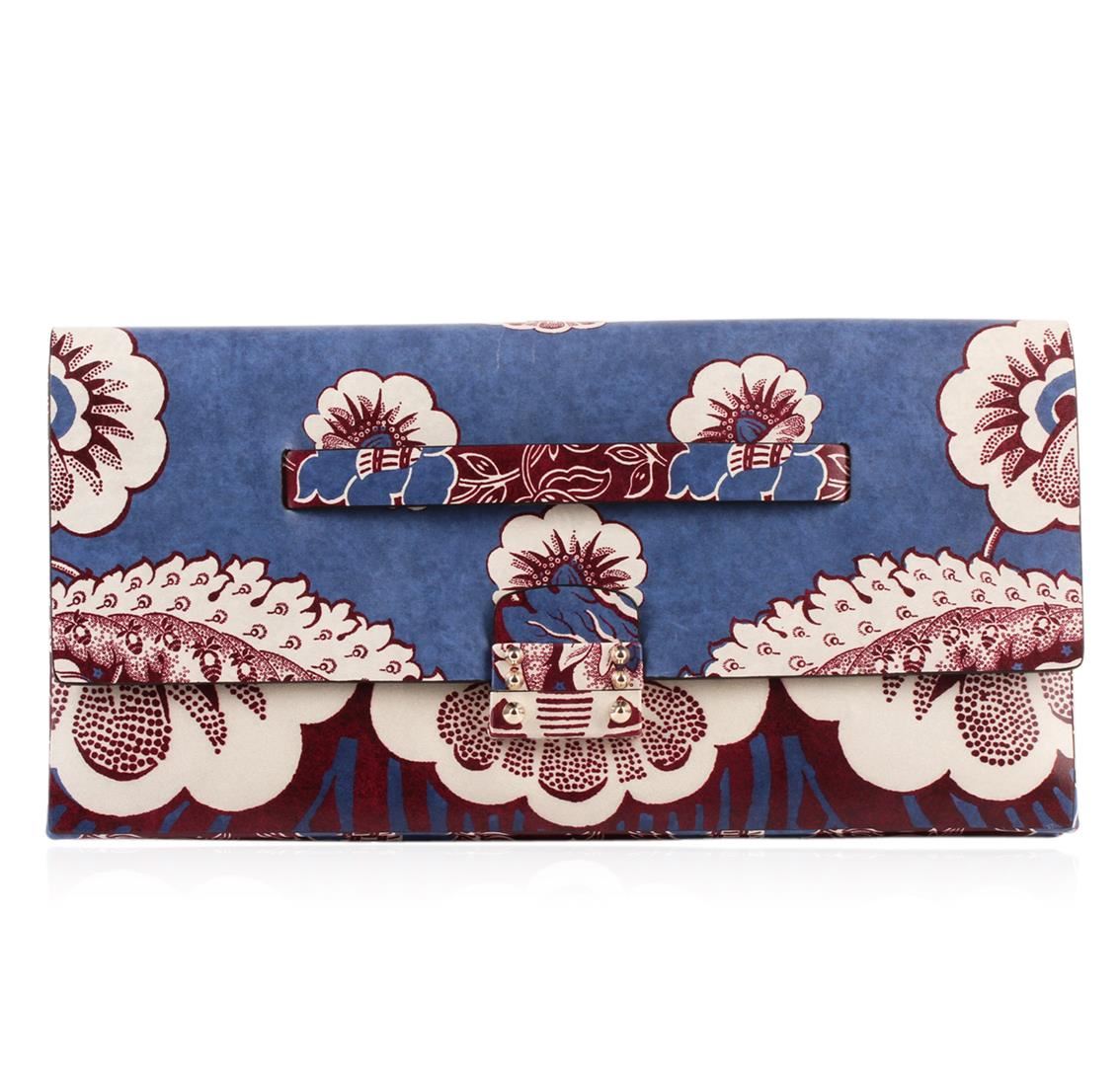 One Valentino 2015 Floral Clutch. Beautiful blue floral clutch from the 2015 line of Valentino. Measures 13.5" x 6.5" x 1". Comes with original Valentino dust bag.