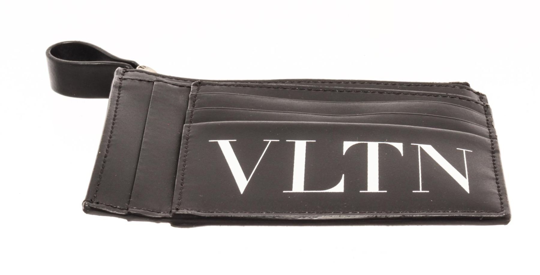 Valentino Black Leather Zip Card Wallet. All available information is listed in the description and shown in the photos. Valentino Black Leather Zip Card Wallet with silver-tone hardware, multiple cards slots, vltn print in contrasting color on the front, top zip closure.