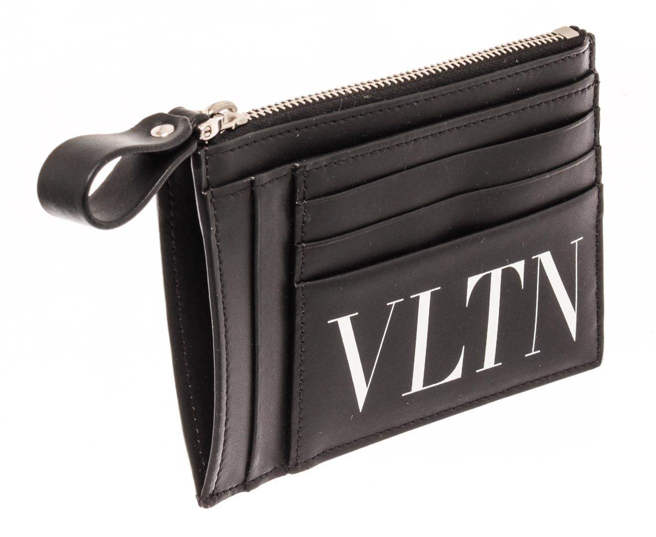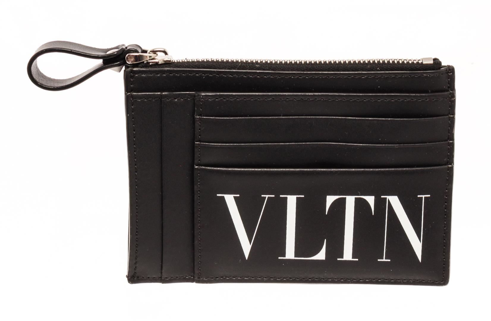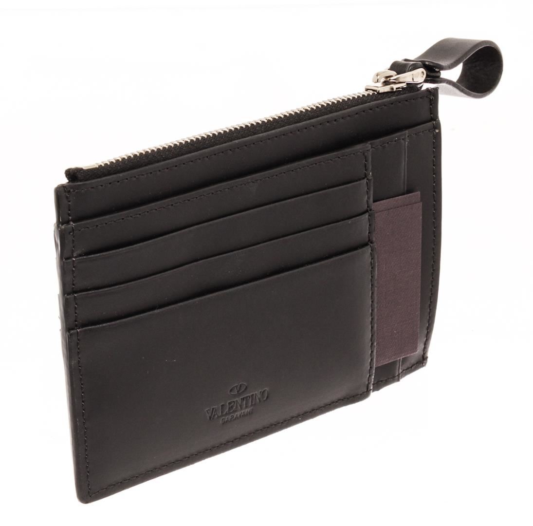 Valentino Black Leather Zip Card Wallet. All available information is listed in the description and shown in the photos. Valentino Black Leather Zip Card Wallet with silver-tone hardware, multiple cards slots, vltn print in contrasting color on the front, top zip closure.