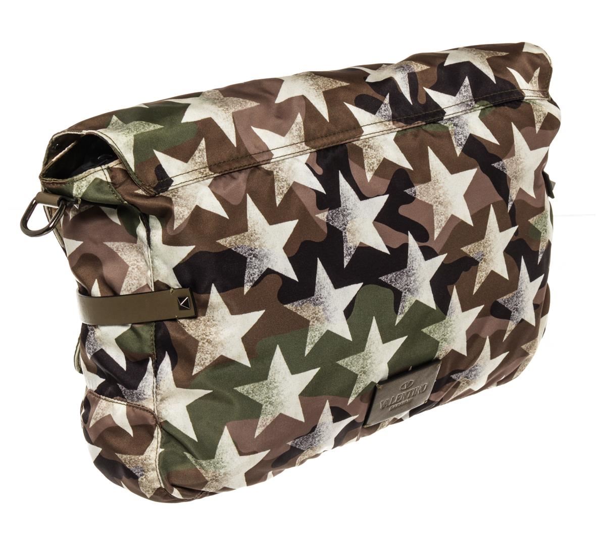 One Valentino Camustars Messenger Printed Camo Nylon Large Print. Item is sold AS-IS. All available information is listed in the description and shown in the photo. Valentino Camustars Messenger Printed Camo Nylon Large Print Condition Details: Small nick on strap base trim, creasing and light wear on exterior and in interior, scratches on hardware. Height 12", Width 17", Depth 4", Strap Drop 15-26