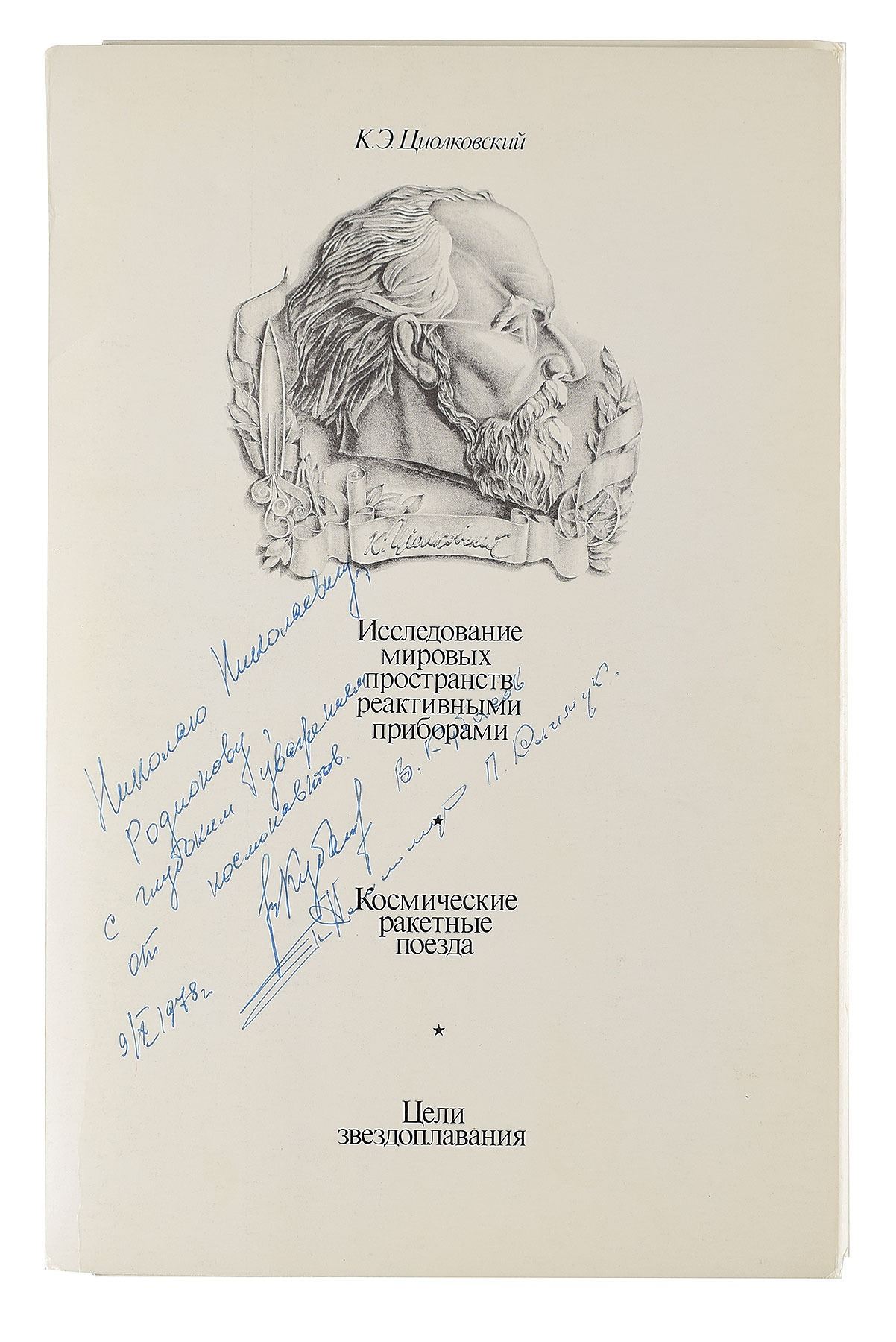 Soviet facsimile editions of the three books carried on the Apollo-Soyuz Test Project (with facsimile signatures of the crewmen on the covers), released by Mashinstroeniye Publishers in 1977, signed and inscribed on the front of a folder containing the set in blue ballpoint by ASTP Flight Engineer Valeri Kubasov. In very good to fine condition, with some splitting to edges of the slipcase for the set.