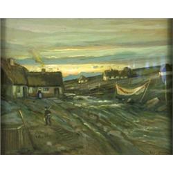 Pastel, fishing village with figures, 58 x 46 cm
