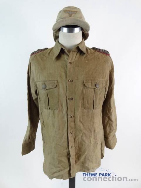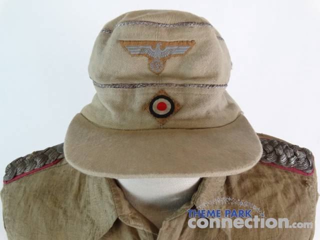 "Valkyrie" tells the story of World War II's most infamous assassination attempt on Adolf Hitler. Tom Cruise portrays Colonel Claus Von Stauffenberg, a German officer asked to help in plotting Hitler's murder. This screen used wardrobe is worn by Cruise during the Tunisia air raid scene at the beginning of the film. Cruise wears a Panzer Division Liutenant Colonel uniform, of which the shirt and hat are up for auction. The uniform shirt features Wehrmacht shoulder tabs, with one tab retaining the metal pin after filming. The shirt has dirt and holes in the fabric made during production, reason being the scene took place in a desert environment. The cap features two German military patches sewn on the front, one Panzer, the other Wehrmacht. The Hero Collection created these wardrobe pieces. The wardrobe was custom made for Tom Cruise and makes for an excellent screen used addition to any Film or Militaria collection.