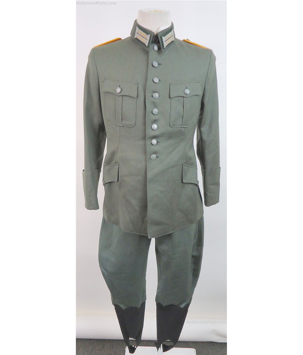 Hero matching outfit worn by Tom Cruise as Col. Claus von Stauffenberg in Valkyrie. Jacket and pants are made of wool and linen. Features embroidered German military emblems and symbols.
