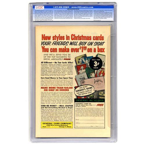 50. Since we cannot examine encapsulated notes or comics, they are sold "as is" without our grading opinion, and may not be returned for any reason. Auctioneer shall not be liable for any patent or latent defect or controversy pertaining to or arising from any encapsulated collectible. In any such instance, purchaser's remedy, if any, shall be solely against the service certifying the collectible.
