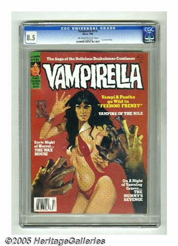 <B>Vampirella #113 (Harris, 1988) CGC VF+ 8.5 Off-white to white pages.</B></I> First issue to be published by Harris. Very low print run according to Overstreet. Overstreet 2005 VF 8.0 value = $206; VF/NM 9.0 value = $316. CGC census 2/05: 4 in 8.5, 7 higher. <I>From the collection of Chris Bell.</B></I>