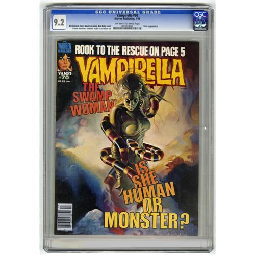 <B>Vampirella #70 (Warren, 1978) CGC NM- 9.2 Off-white to white pages.</B></I> Rook appearance. Ken Kelly cover. Ramon Torrents, Gonzalo Mayo, and Auraleon art. Overstreet 2006 NM- 9.2 value = $40. CGC census 2/07: 1 in 9.2, 9 higher.<BR><BR><b>Shipping:</b> Comics - Slabbed (certified) (<a target="_blank" href="http://www.heritageauctions.com/common/shipping.php">view shipping information</a>)