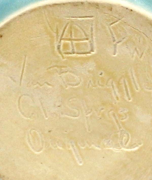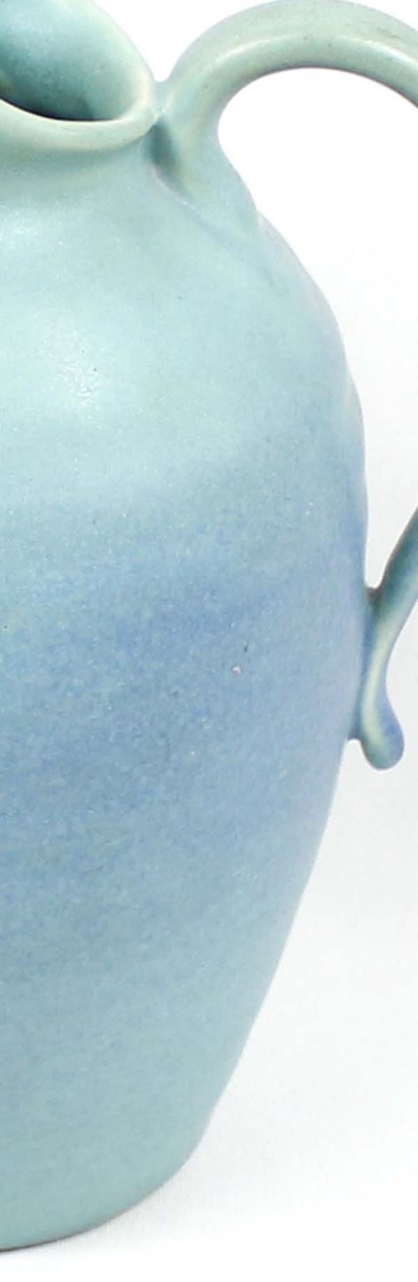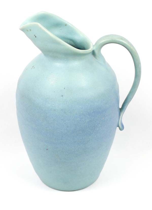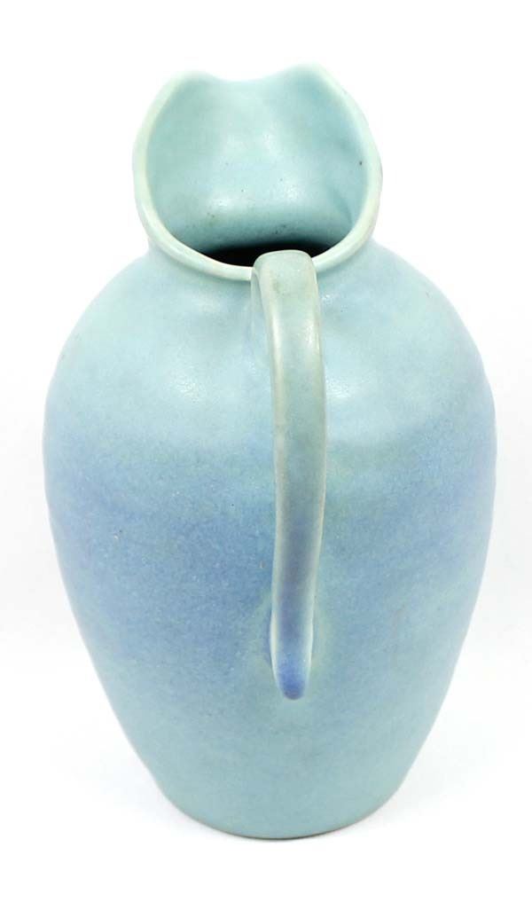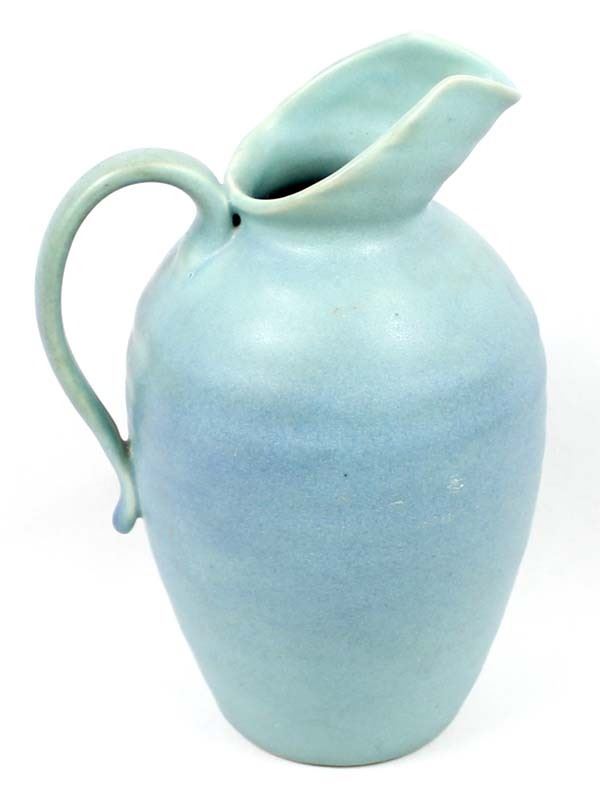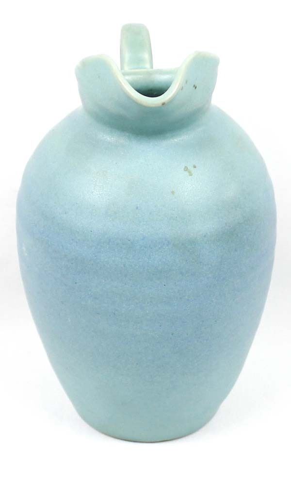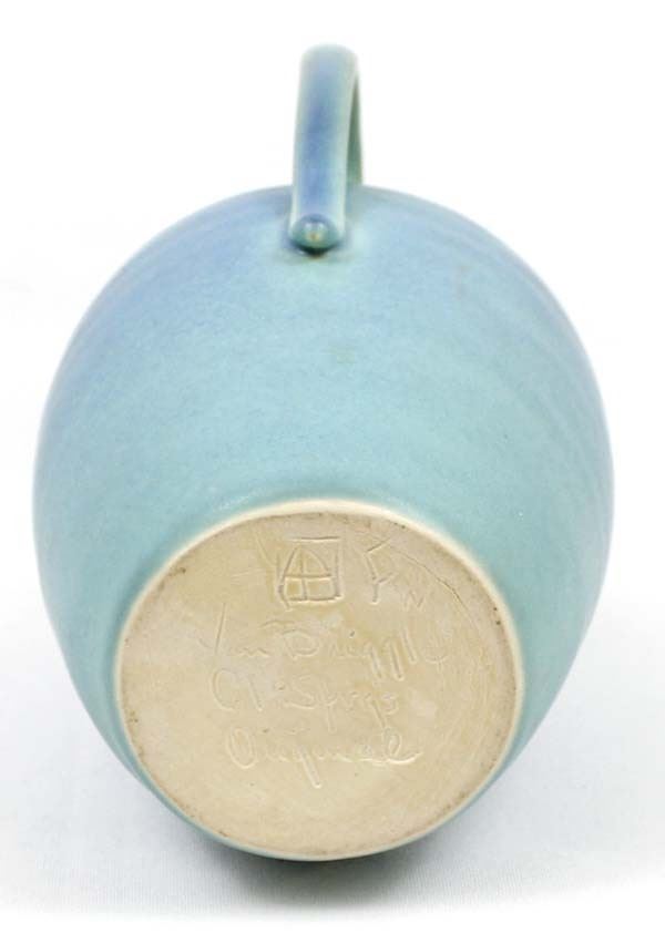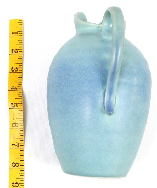 Van Briggle Blue Green Pottery Pitcher, measures 4'' x 8'' x 5'' and is marked on the bottom