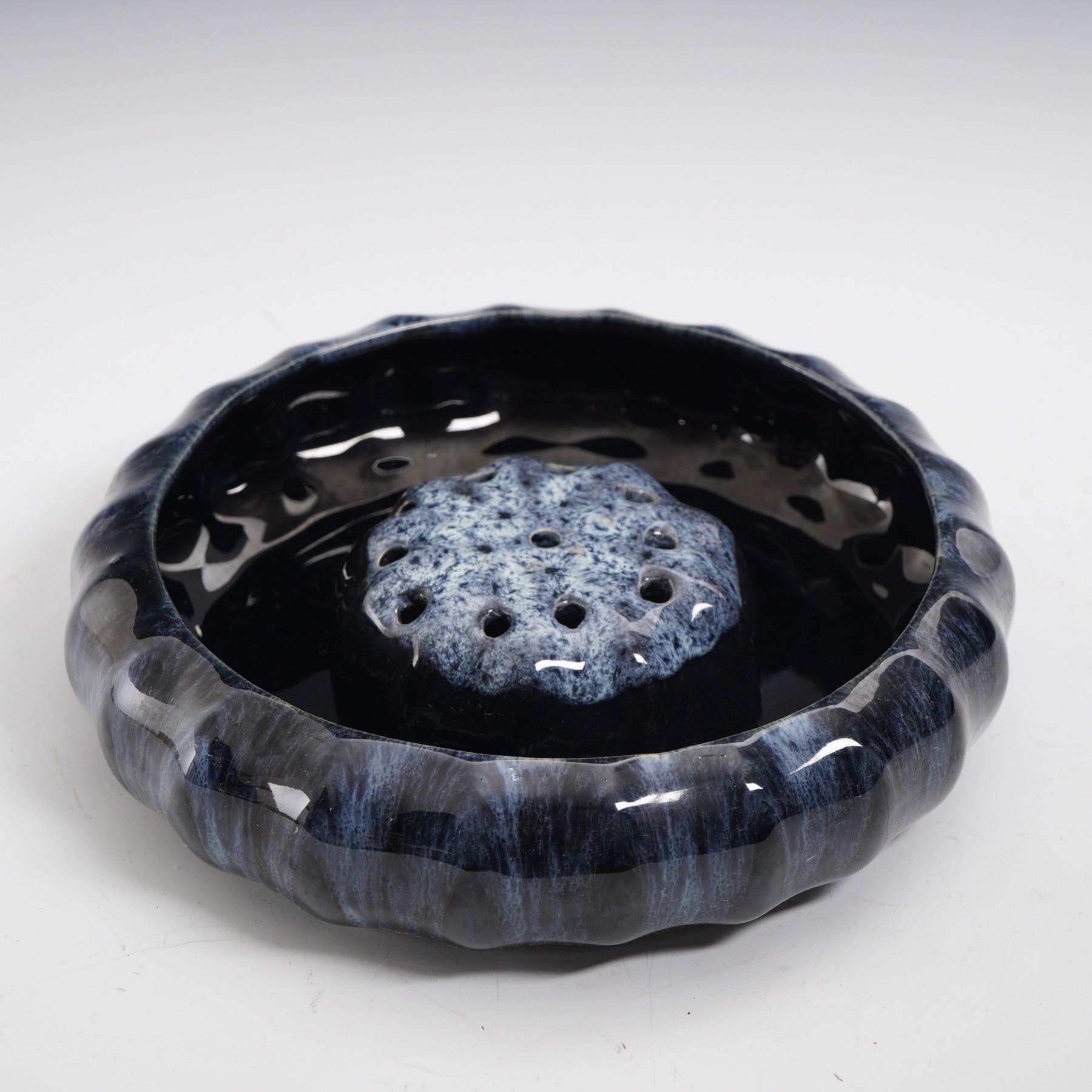 Van Briggle Glazed Pottery Bowl with Flower Frog
