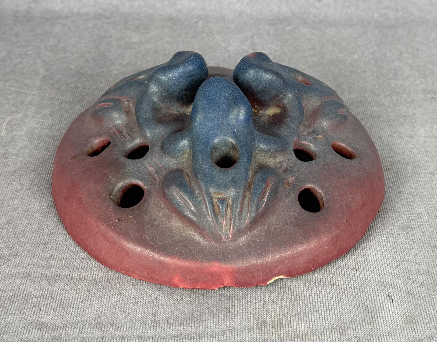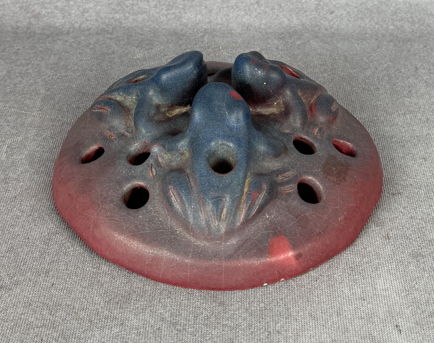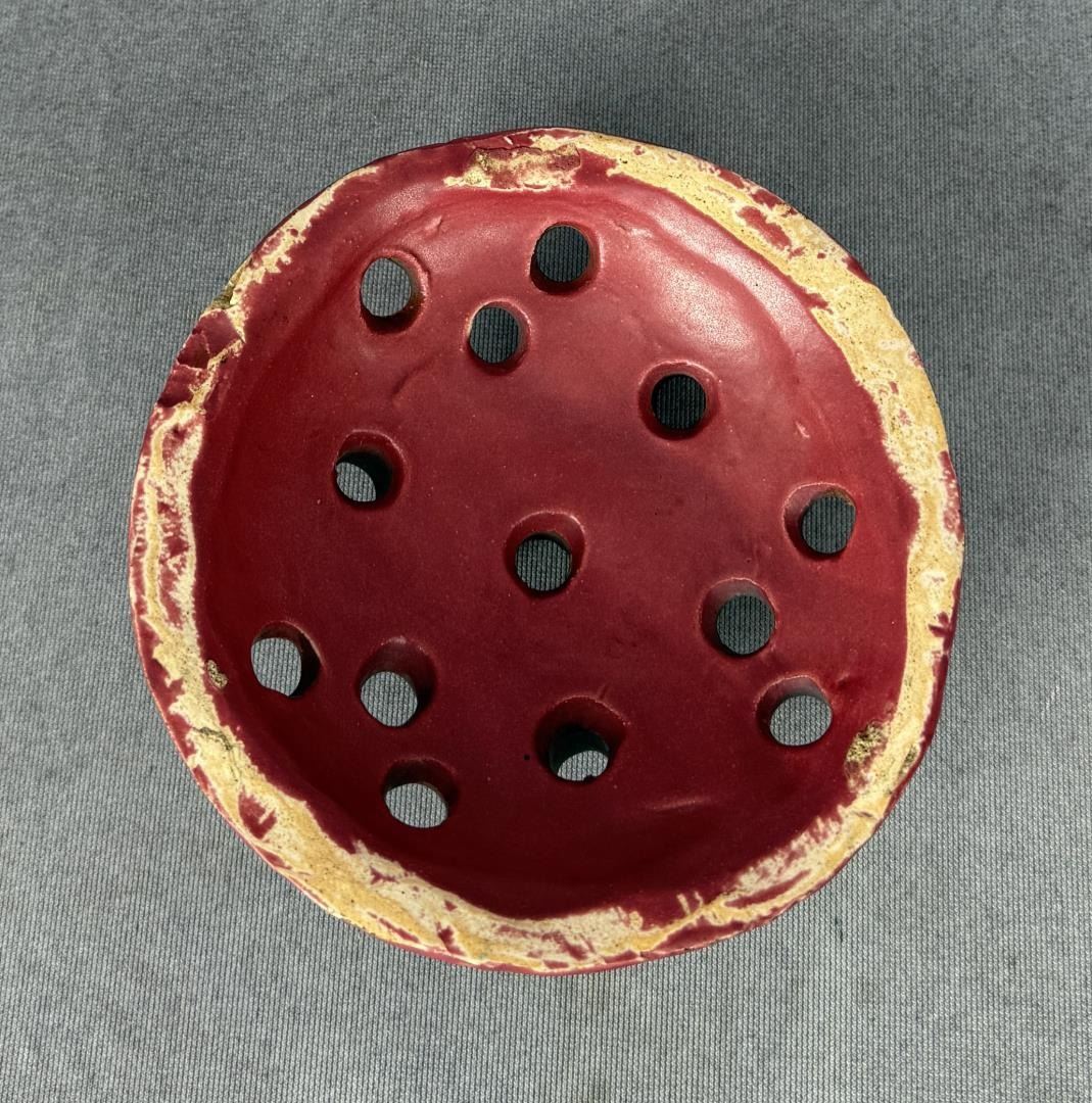 5" Diameter, 2" tall. Crazed, could stand a good cleaning in white vinegar.