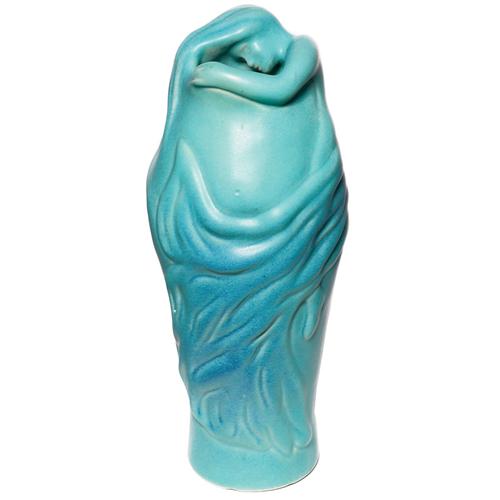 Van Briggle vase, ca. post 1930, Loreli design under a blue and green matt, incised marks, 11"h