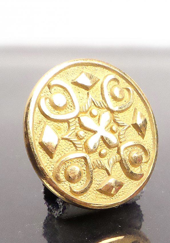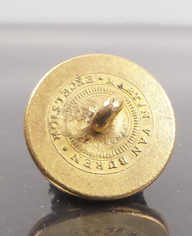 Gilt brass button with raised design against a matte finish ground. The reverse is stamped "Martin Van Buren Excelsior." Lit.: Sullivan-DeWitt MVB-1840-18. 13/16" Diameter. Nice condition.