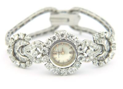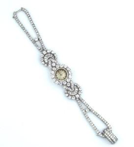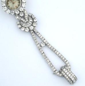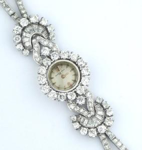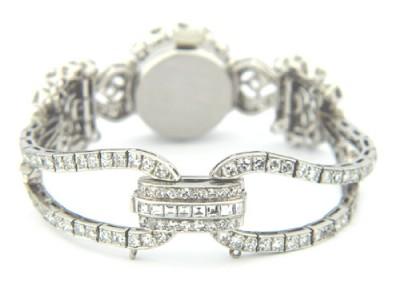 Van Cleef & Arpels 18K White Gold, Diamond Watch.The watch's weight is 43.4 grams.Total weight of (Round & Princess cut & Baguette) diamond: 12 cts. G color, VS clarity.The length of watch: 5.25" long, 15 mm wide.
