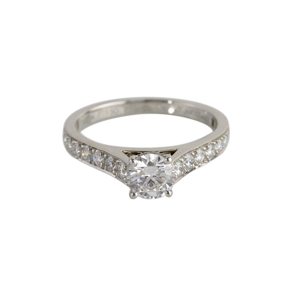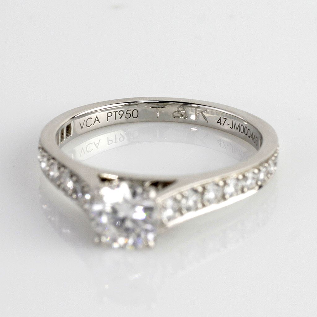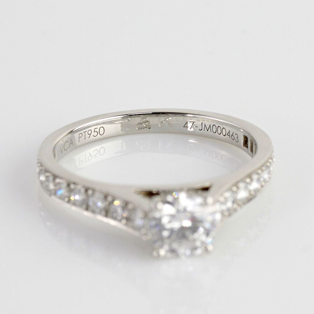 Van Cleef & Arpels Diamond Platinum Engagement Ring. Signed and Numbered VCA, PT950, 47-JM000463. Engraved T & K